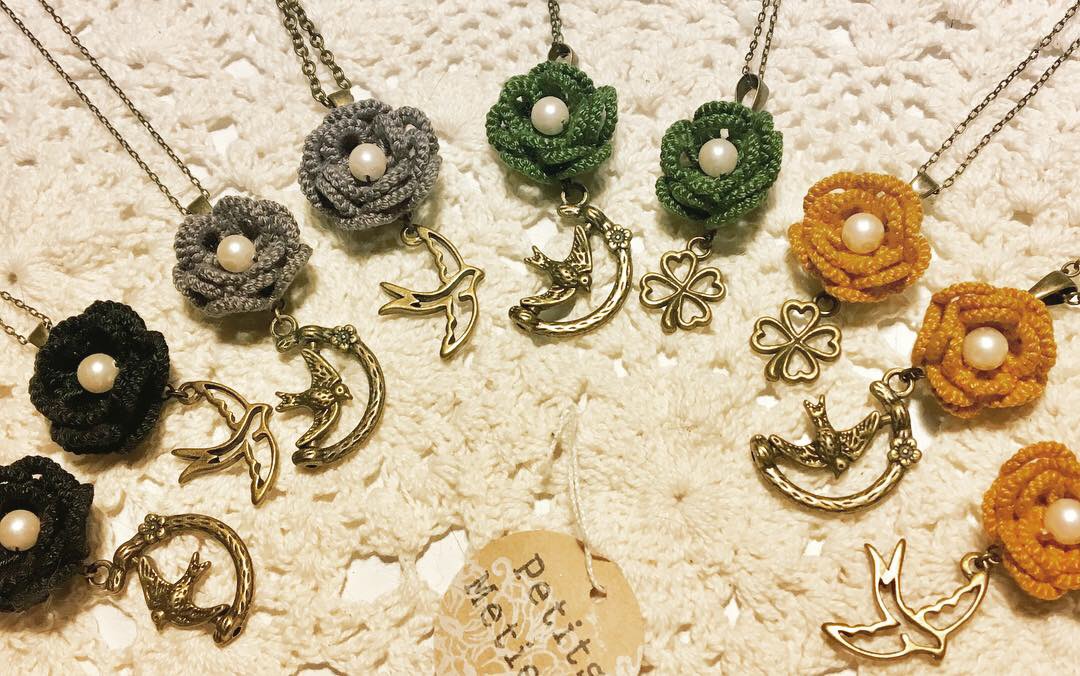 タティングレースを使ったアクセサリー等を中心に製作・販売しています。 【タティングレースとは】 シャトルと呼ばれる舟形の小さな糸巻きに巻いた糸を使って結び目を作っていくレース編みの技法です。フラワーモチーフや雪の結晶のようなモチーフが得意な技法で、独特の繊細なシルエットに仕上がります。 横浜在住で、主に東京と神奈川のイベントに参加していますのでよろしくお願いしますヽ(´▽`)/