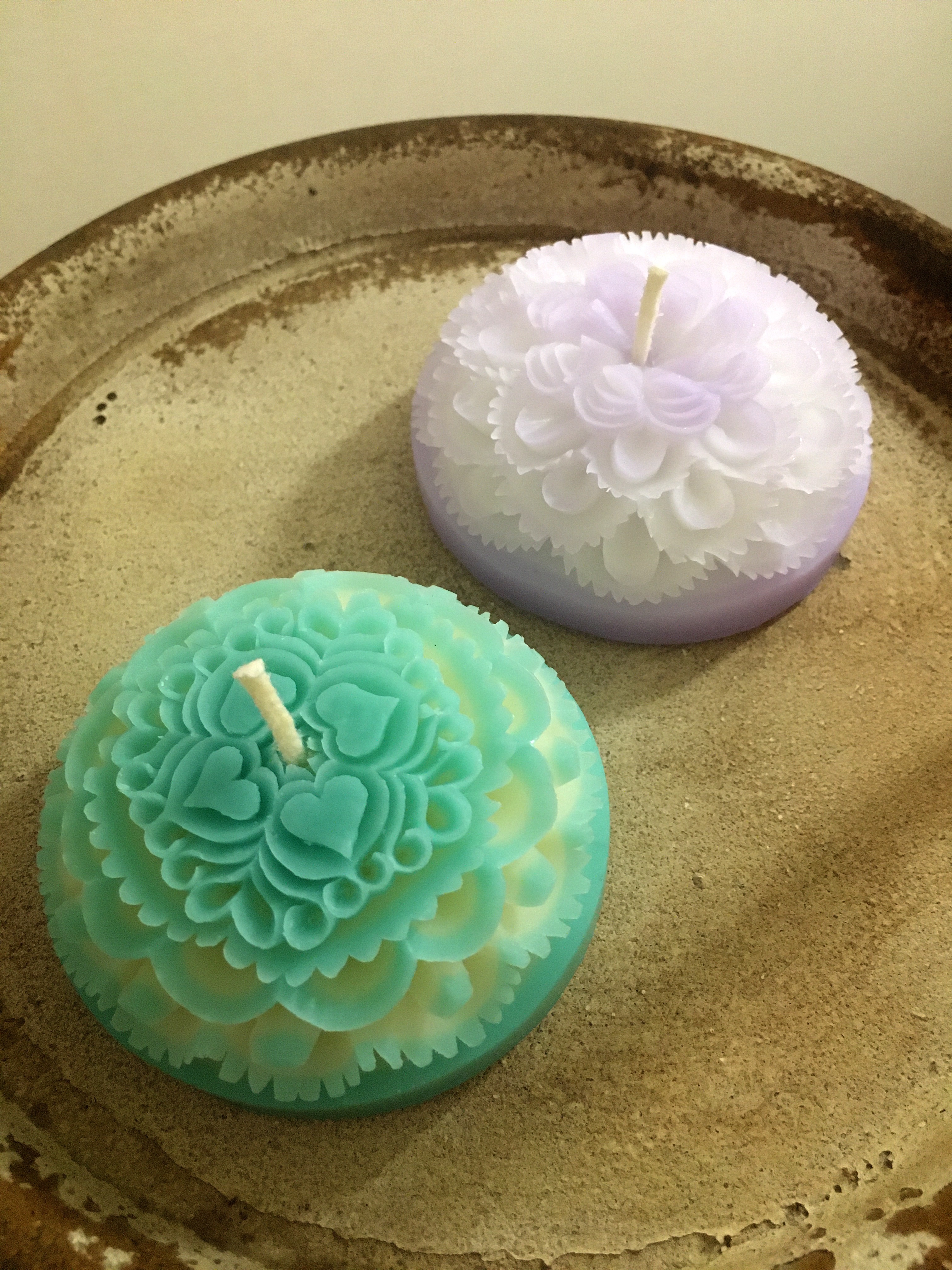 〜ソープカービング〜 市販の石鹸を専用ナイフで彫刻した観賞用の石鹸です。優しい香りと一緒に楽しんで下さい。 〜キャンドルカービング〜 手作りキャンドルに彫刻しています。