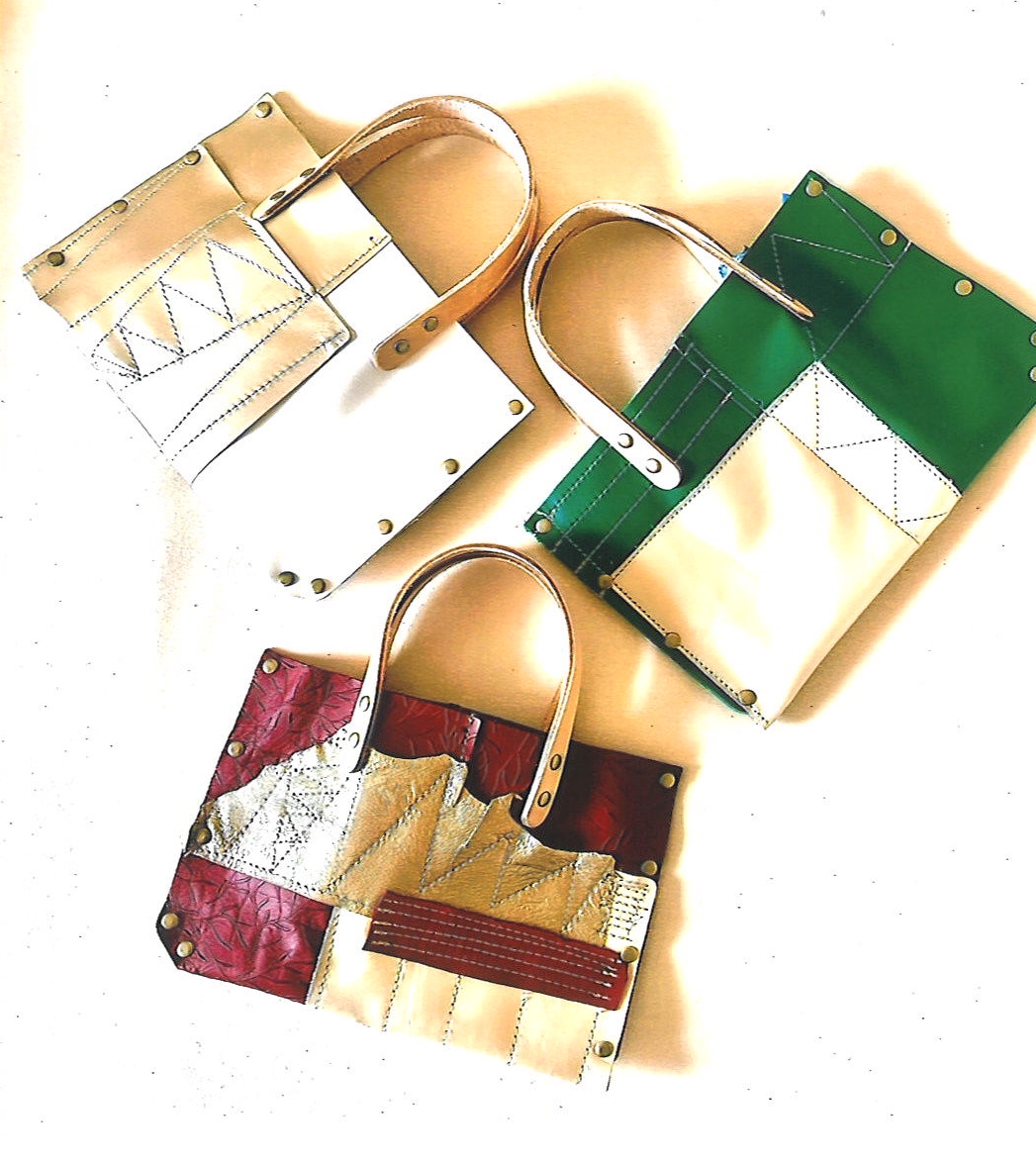 革と帆布のトートバック。帆布や古布などを使い制作したしています。又SDGsの取組みとして傷のある革や古布などを使いゴミを出さない制作を心がけています。