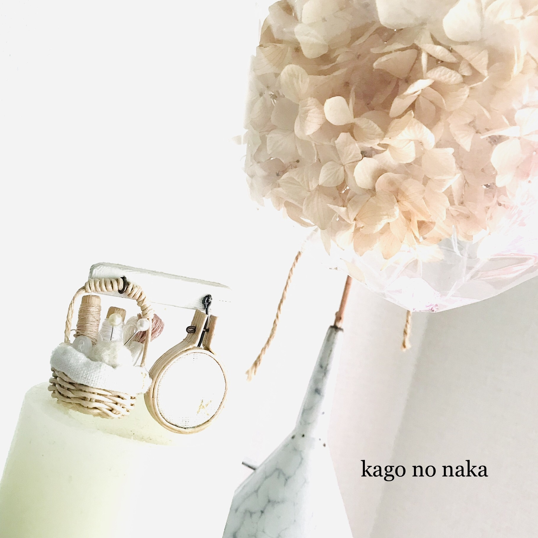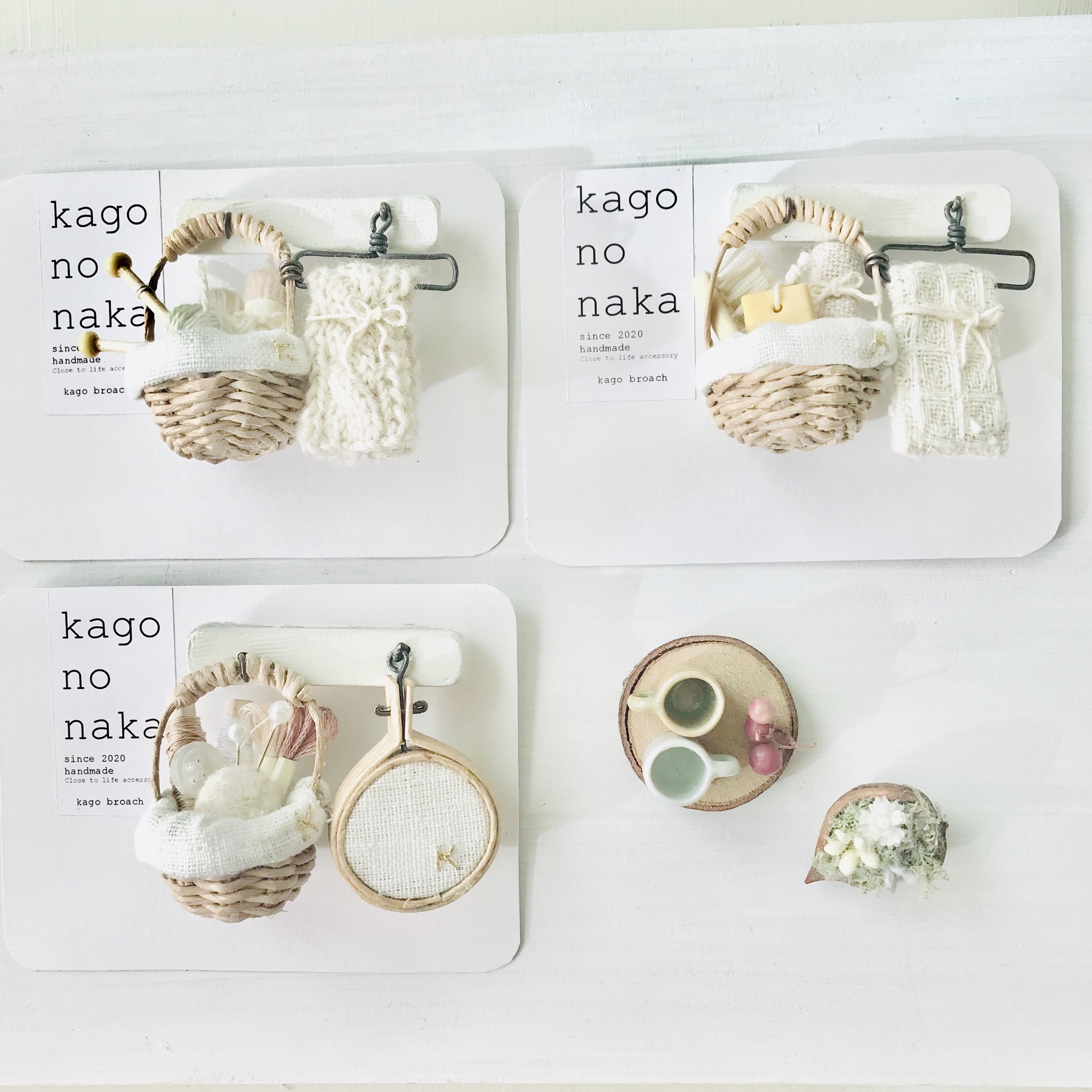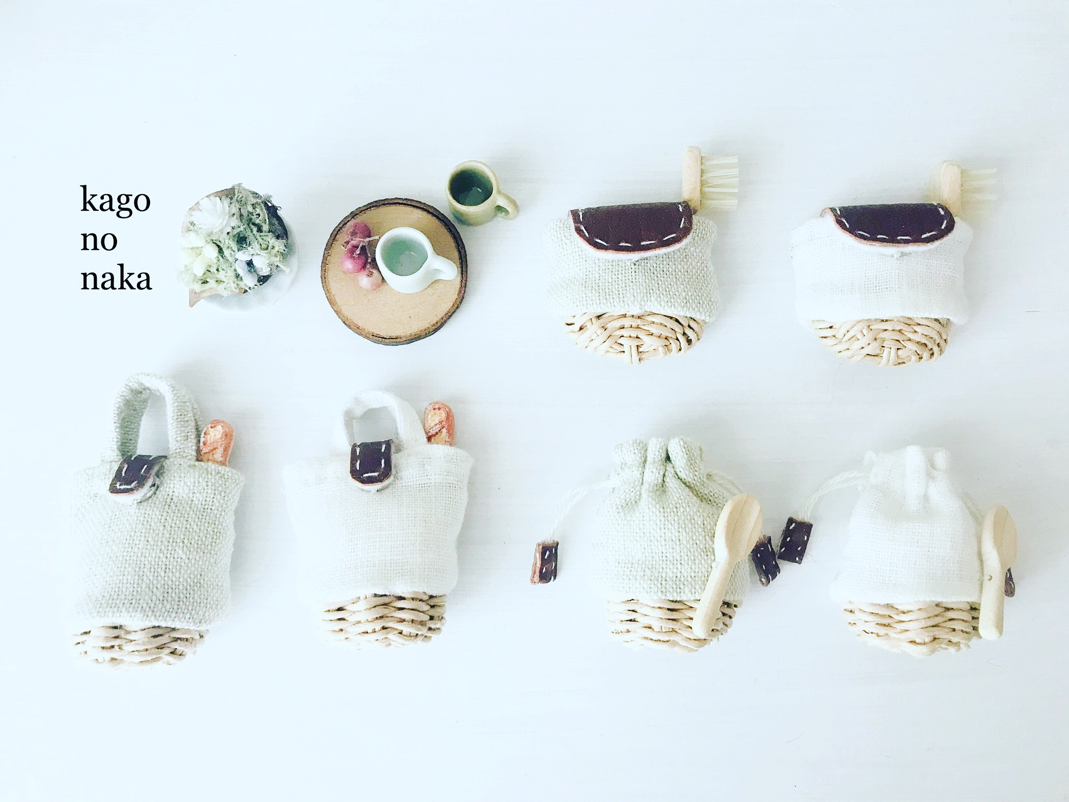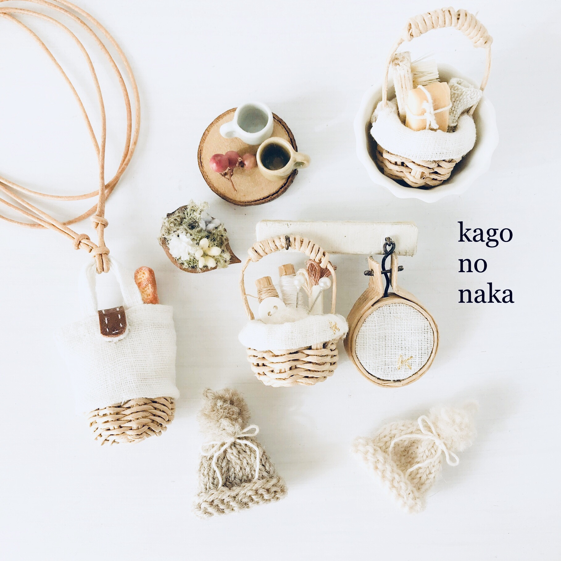 手編みのかごに道具を詰め込んだミニチュアアクセサリー