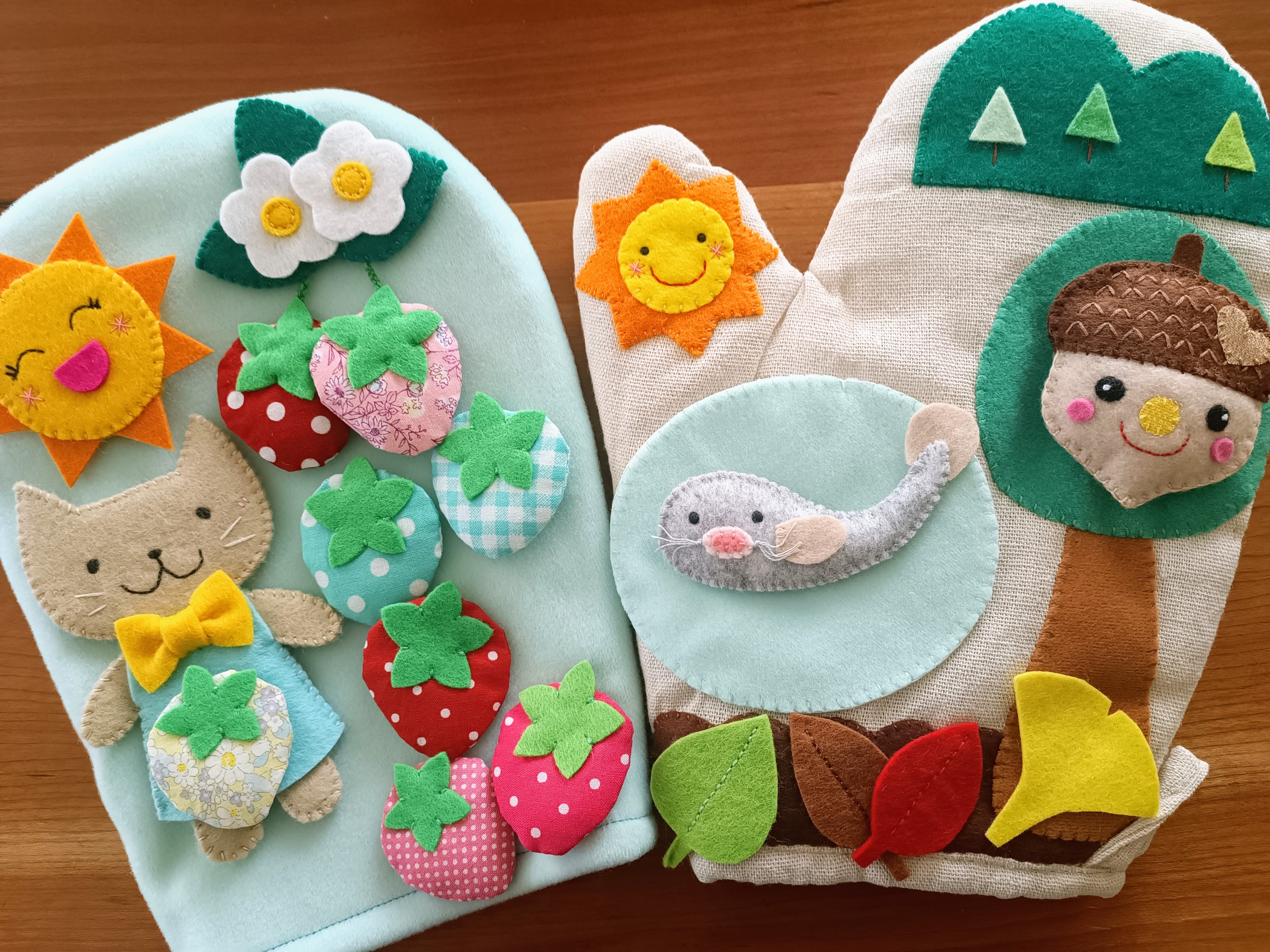布やフェルトで作る手袋シアター・ボードシアター・パペット人形・指人形等の保育グッズやおままごとおもちゃ