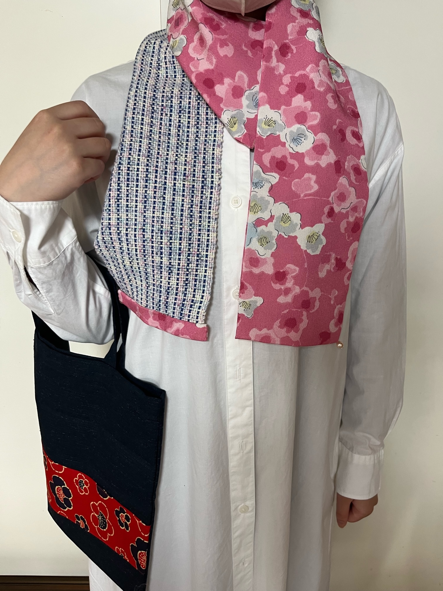 寄付いただいた着物を使って手作りしたオリジナルリサイクル商品です。