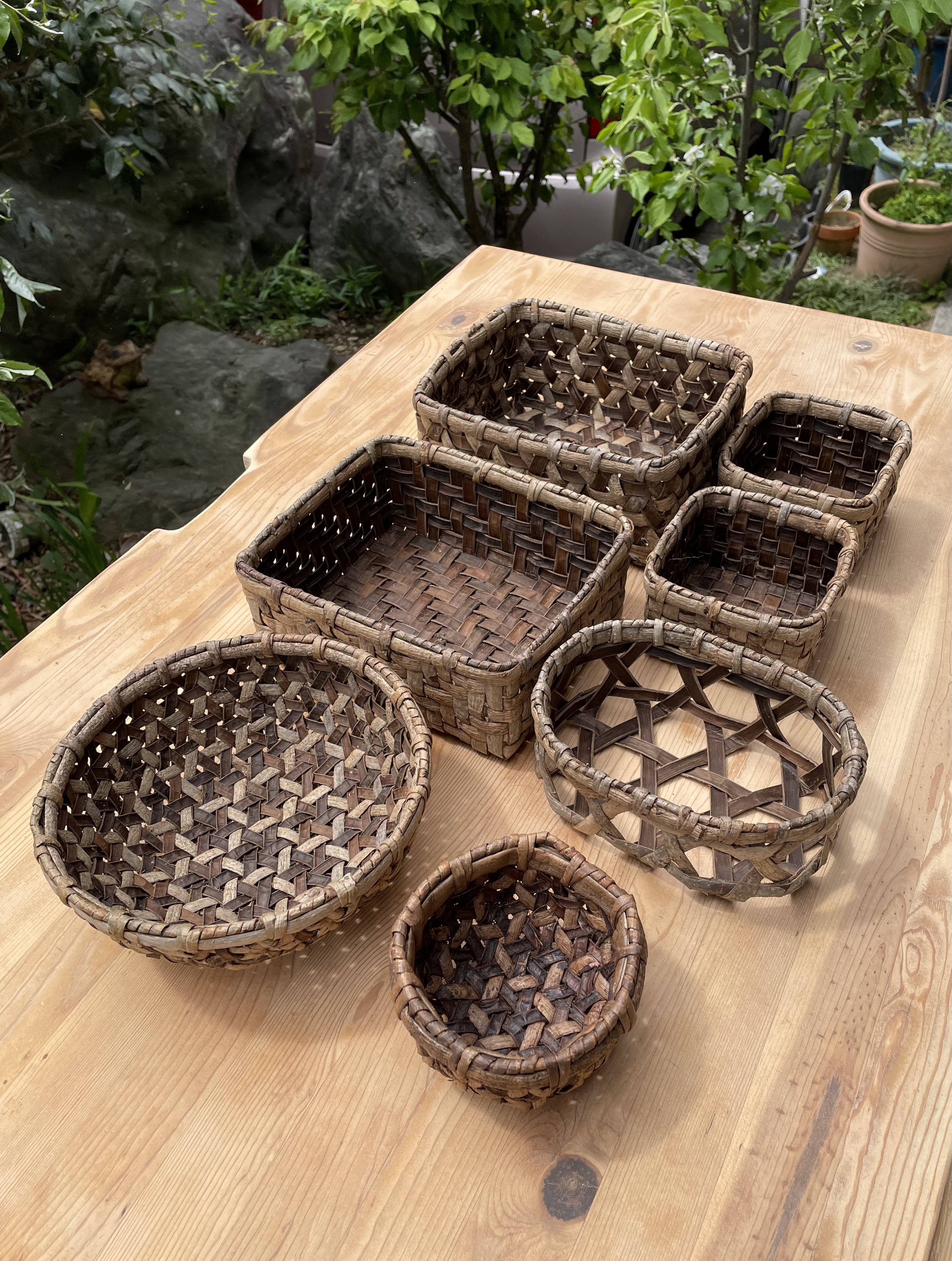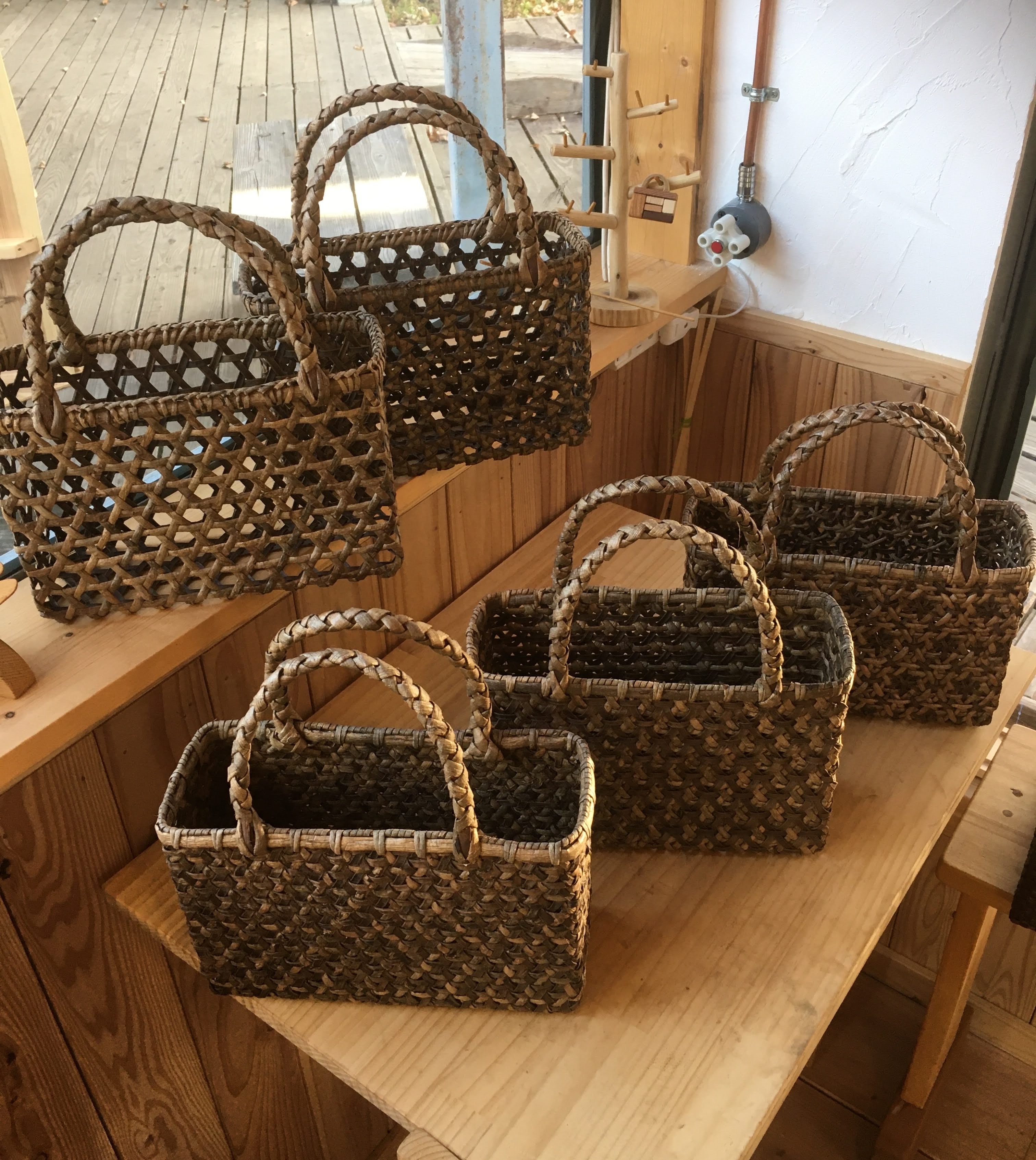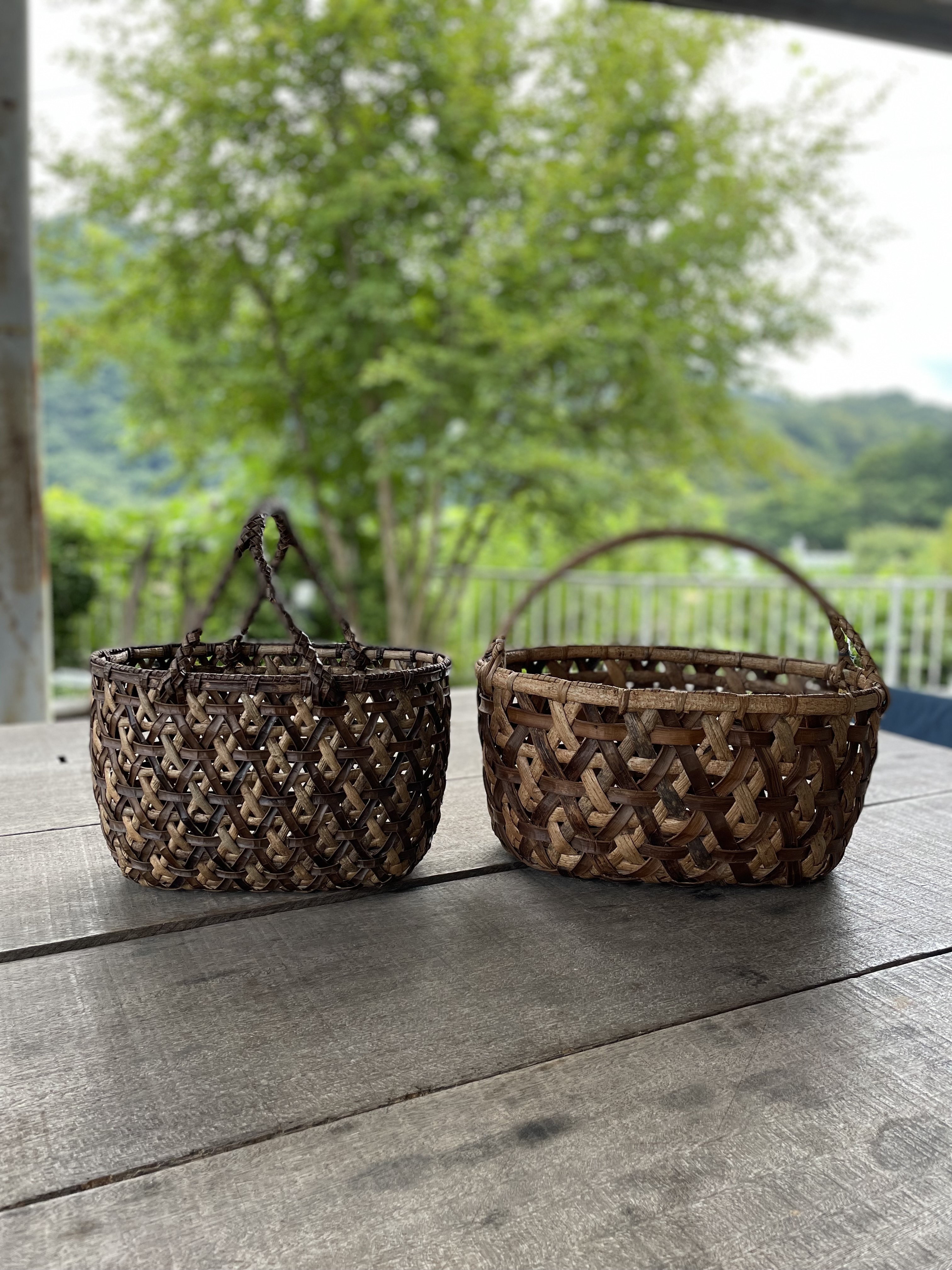 藤野・上野原など、相模湖周辺の里山に自生するくるみを使って、夫婦でかごを編んでいます。他に、樹皮を剥いだあとの木を使った木工雑貨など。