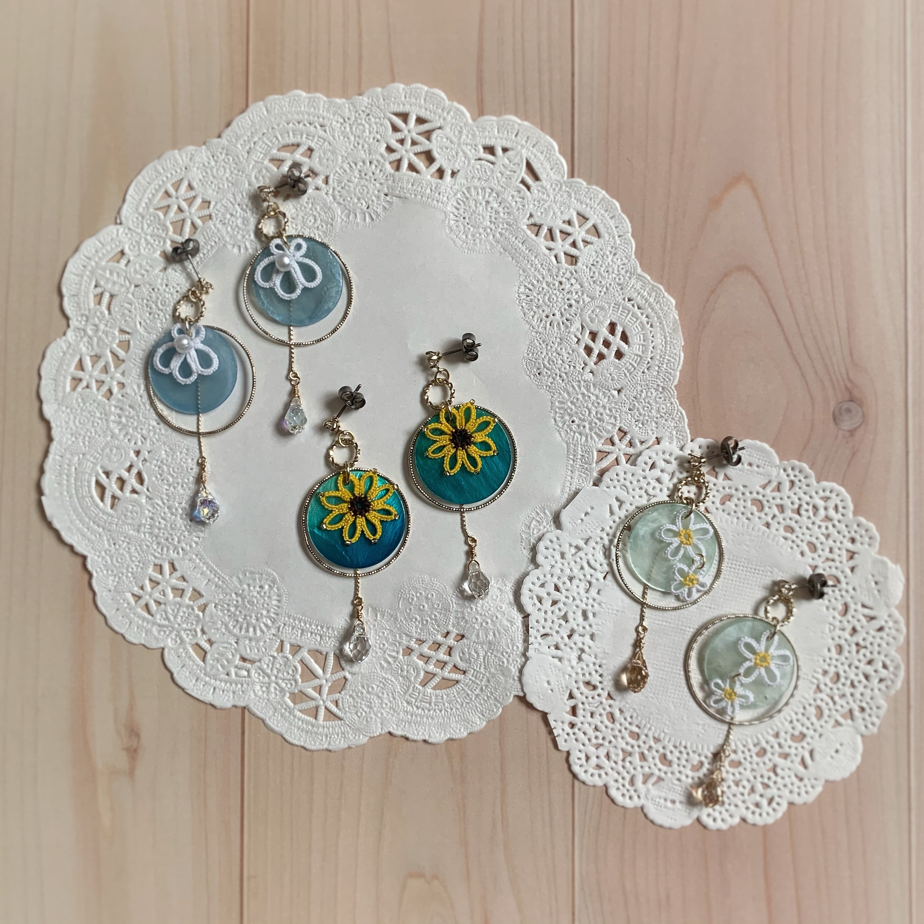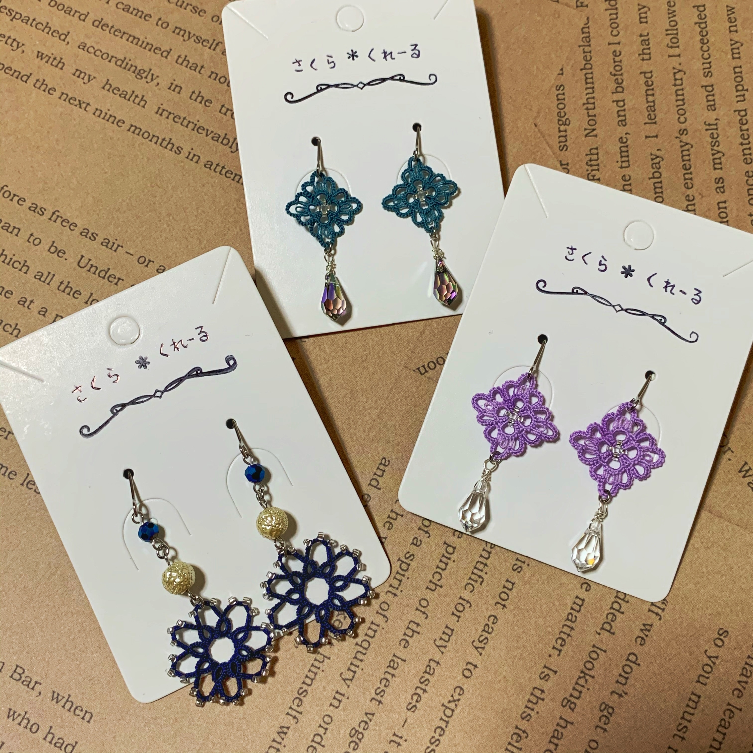 色とりどりの糸でタティングレースの軽やかなアクセサリーを製作しております。