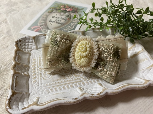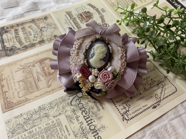 一点物のヘアアクセサリーとブローチ 使いやすいラミネート素材のバッグとポーチ