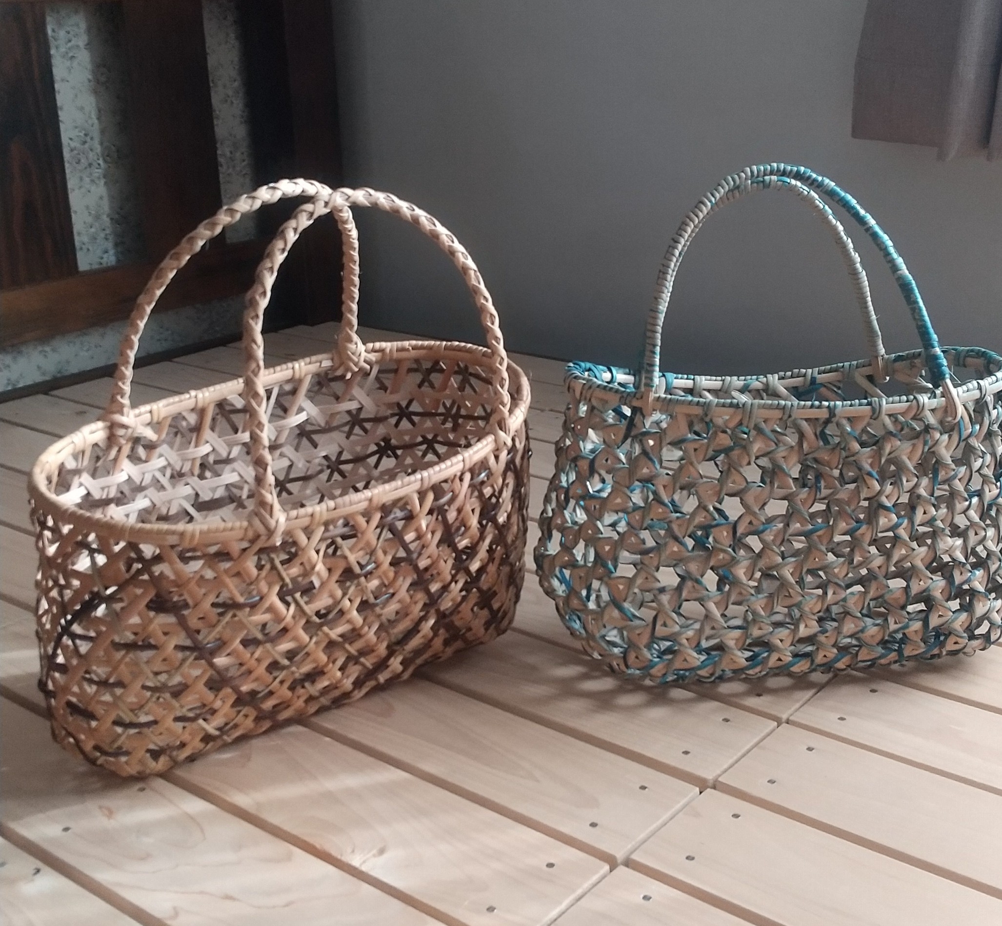 籐樹皮の籠、リース、押し花カード