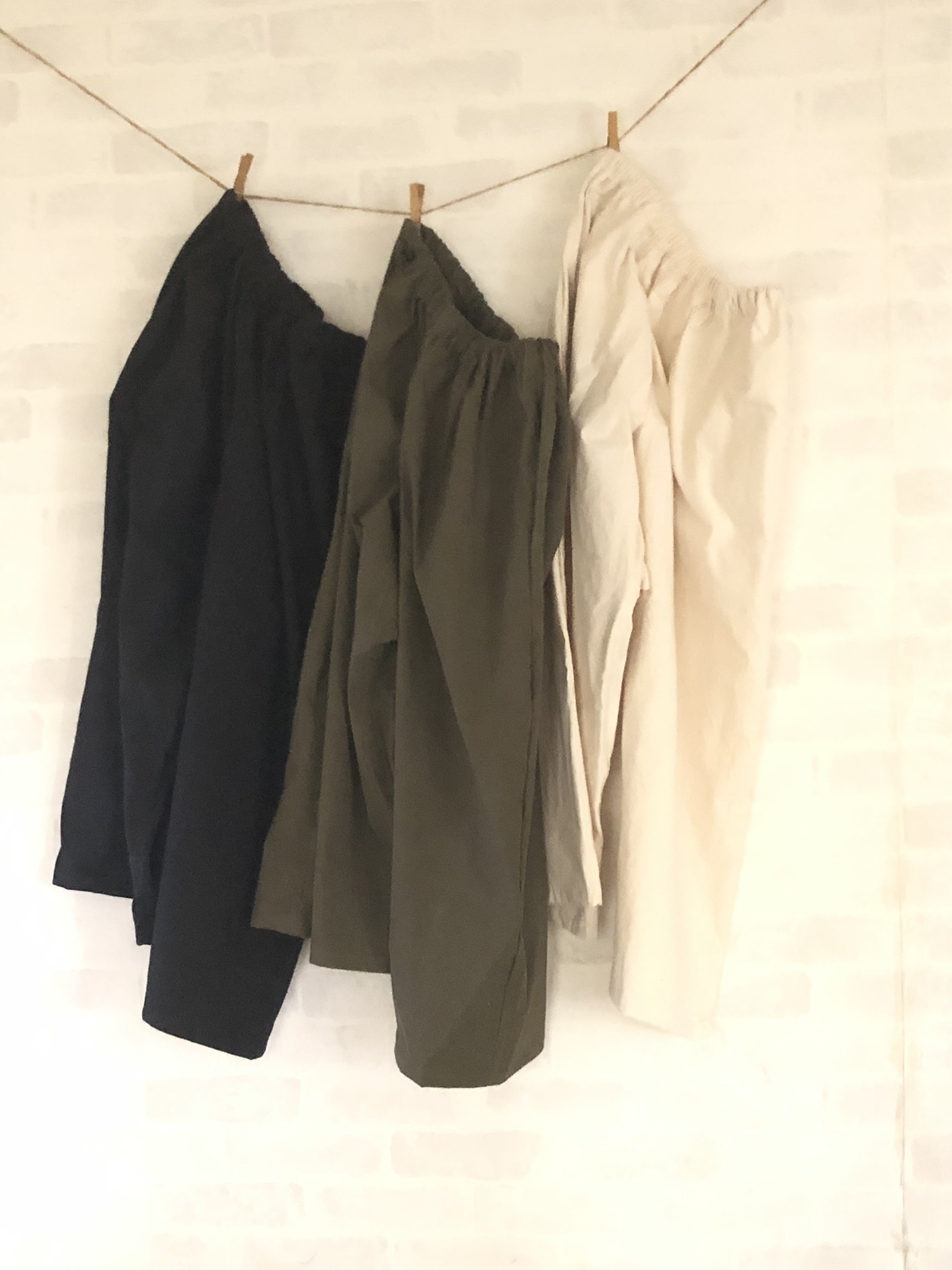 リネンやコットン、ウールの布を使用して、服作りをしています。『心地よいもの』『楽しくなれるもの』をと思いながら、作成しています。