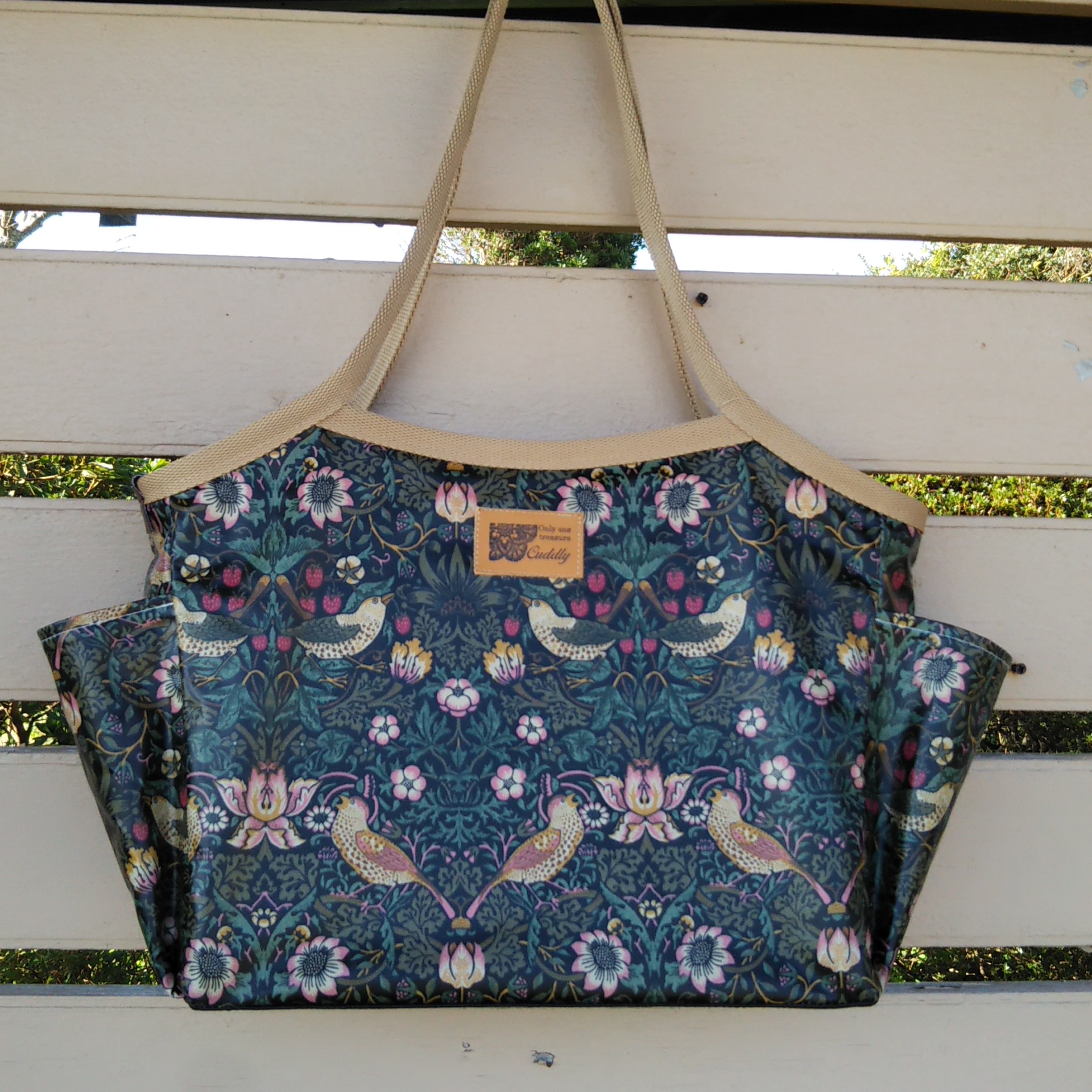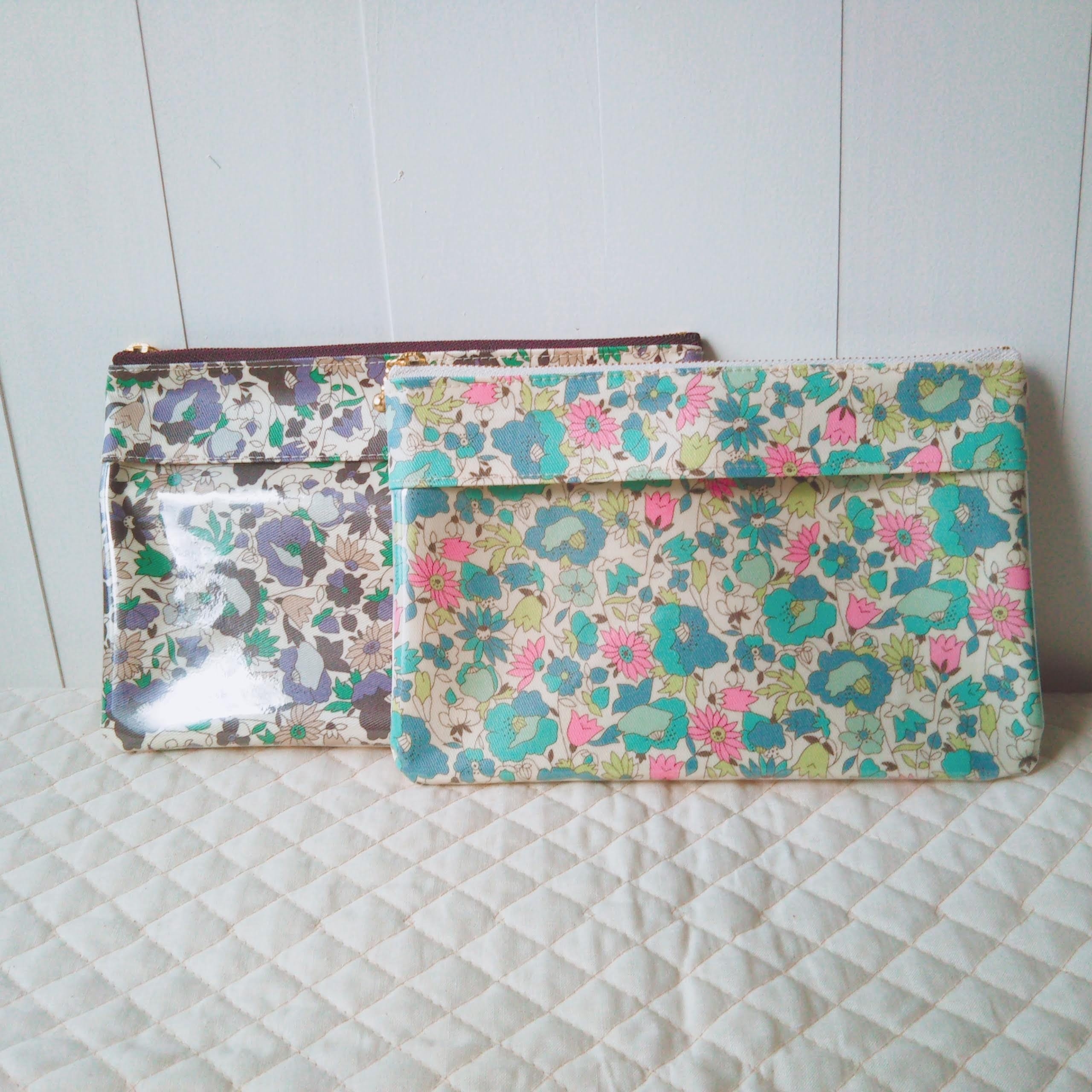 ラミネート生地を中心に使い普段使いしやすいバックやポーチを色々なサイズ柄で多数 用意してお待ちしています。
