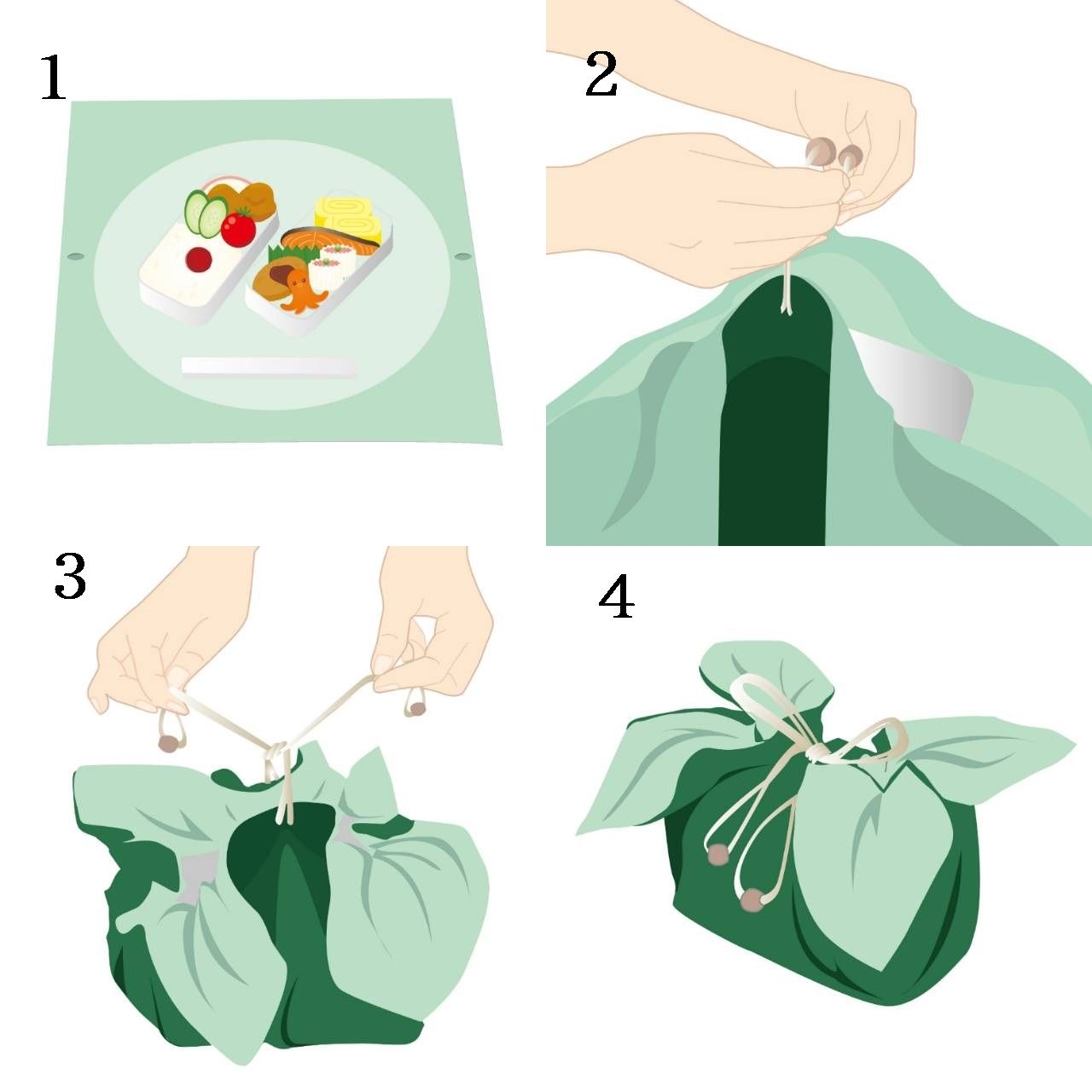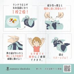 紐を引っ張り結ぶとお弁当袋に早変わりありそうでなかった特許のランチクロス