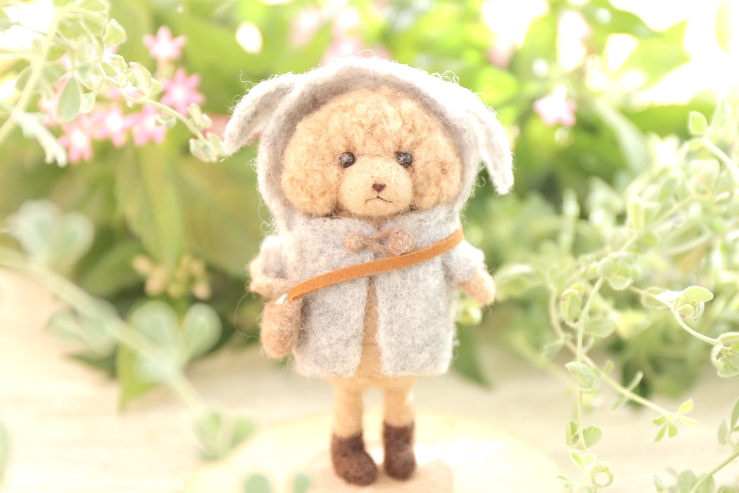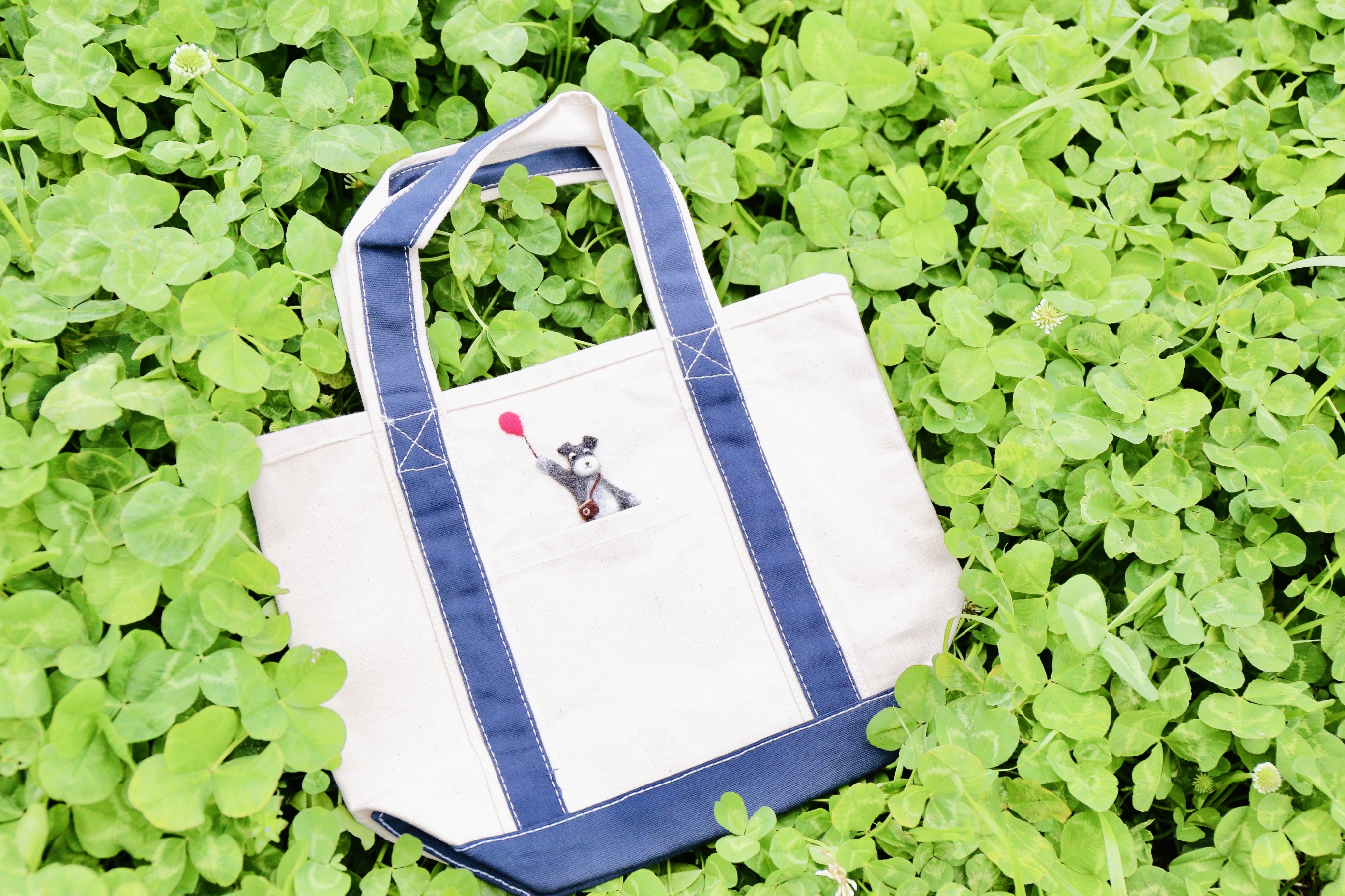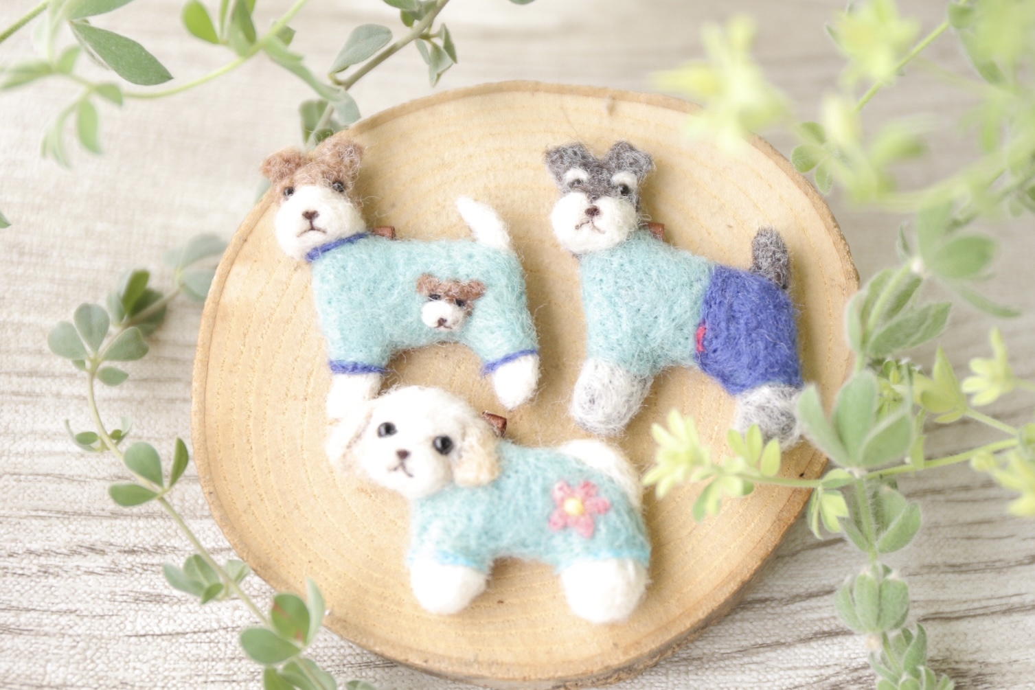 羊毛フェルトを使った犬メインの動物の置物、トートバッグ、ブローチなど