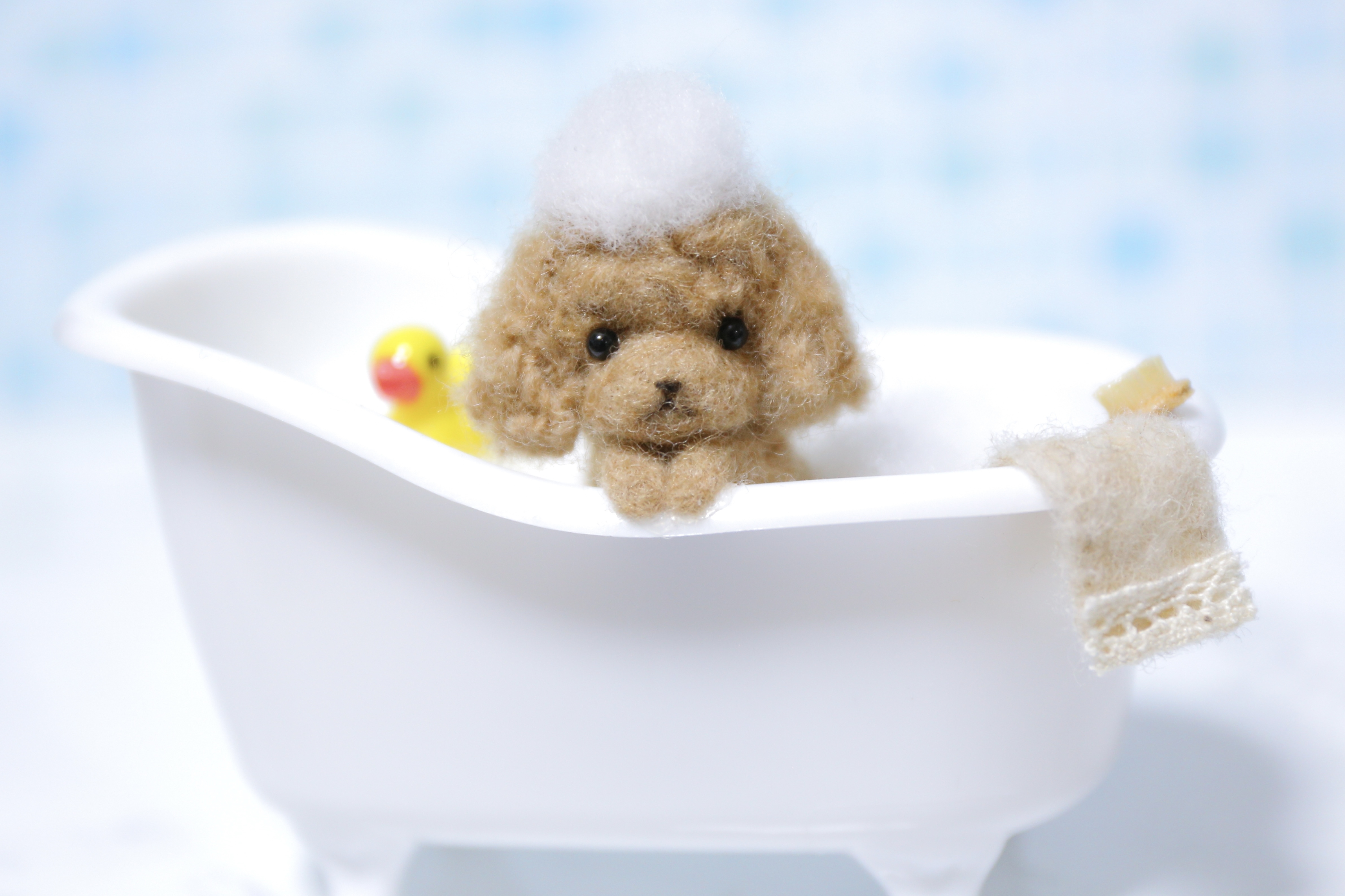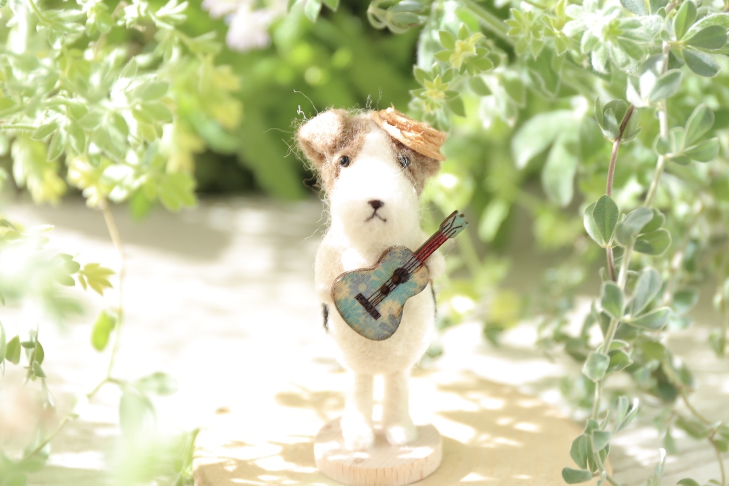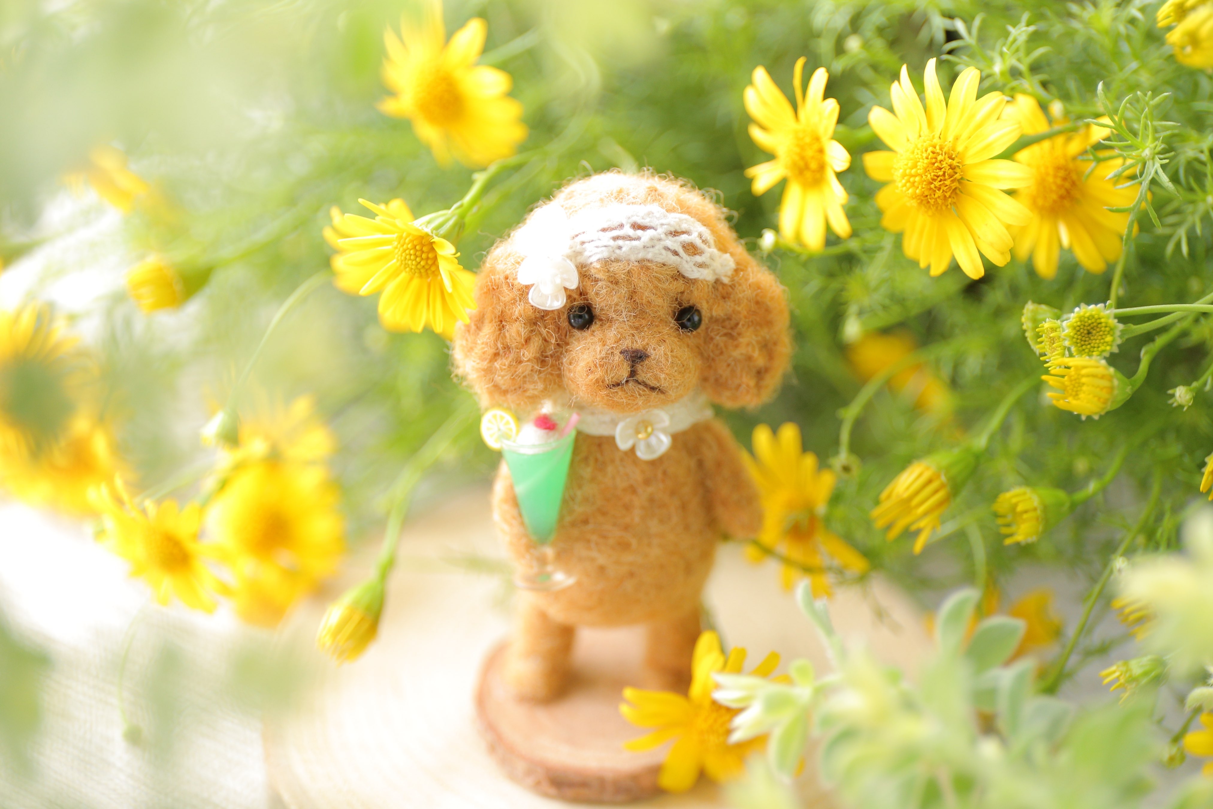 羊毛フェルトを使った犬メインの動物の置物、トートバッグ、ブローチなど