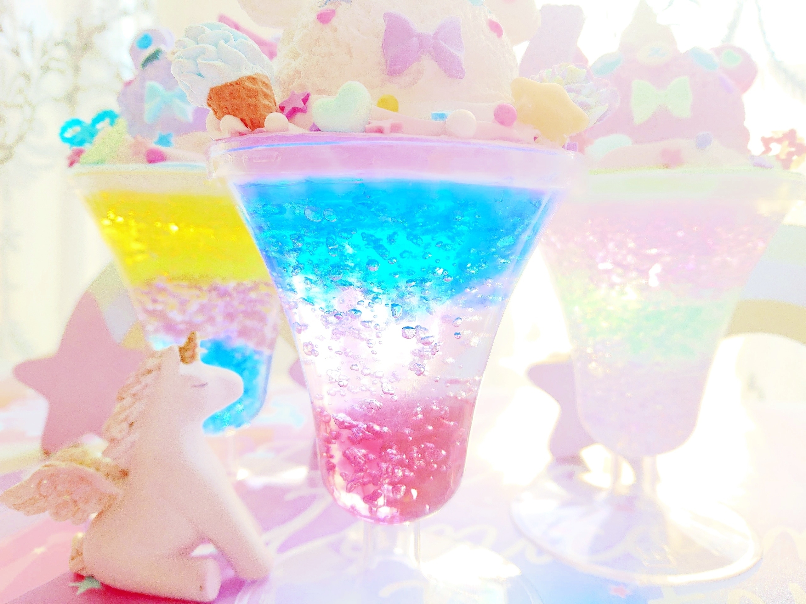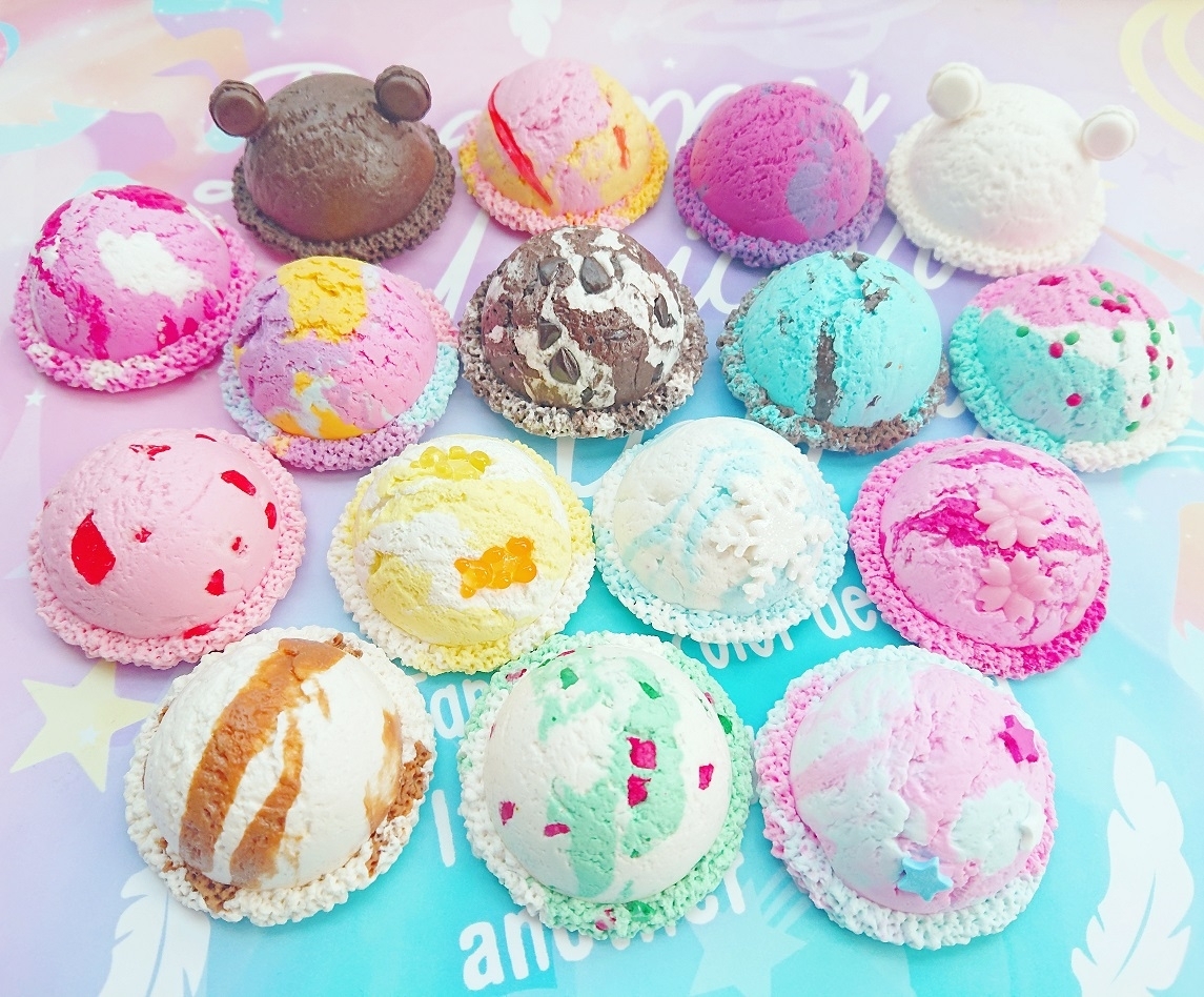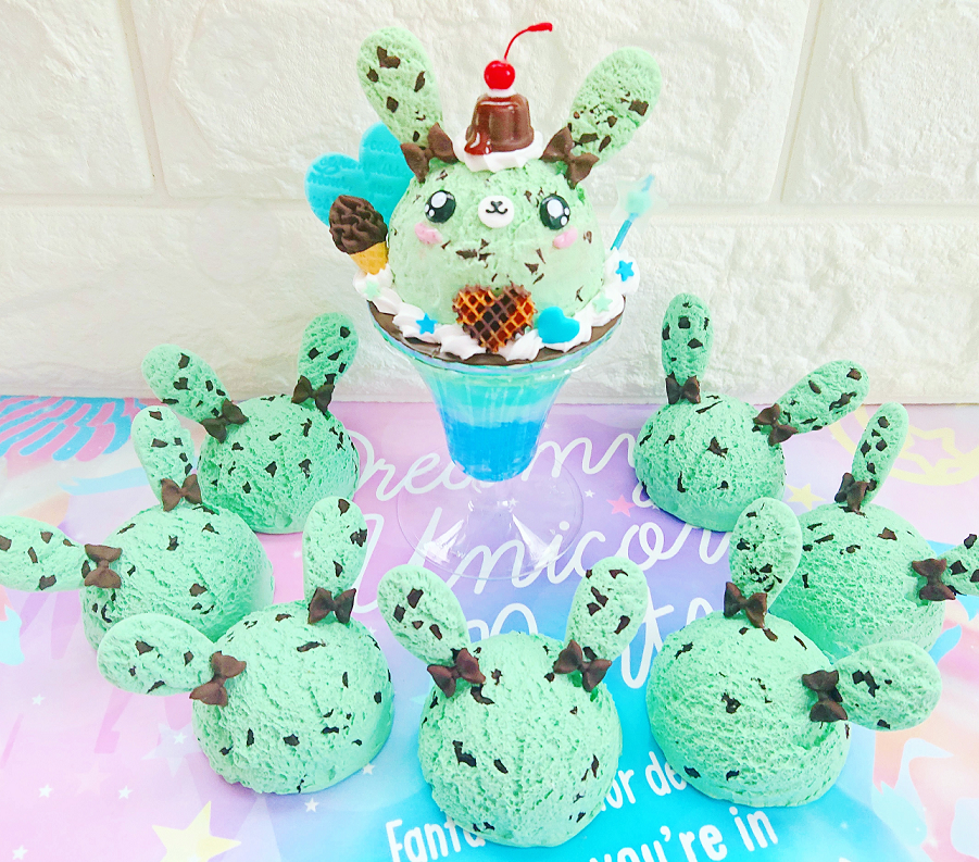 好きな色のくまアイスorうさぎアイスと、8色のゼリーポリマーから好きな色を選んで、クリームソーダ風お部屋の消臭芳香剤を作ります。