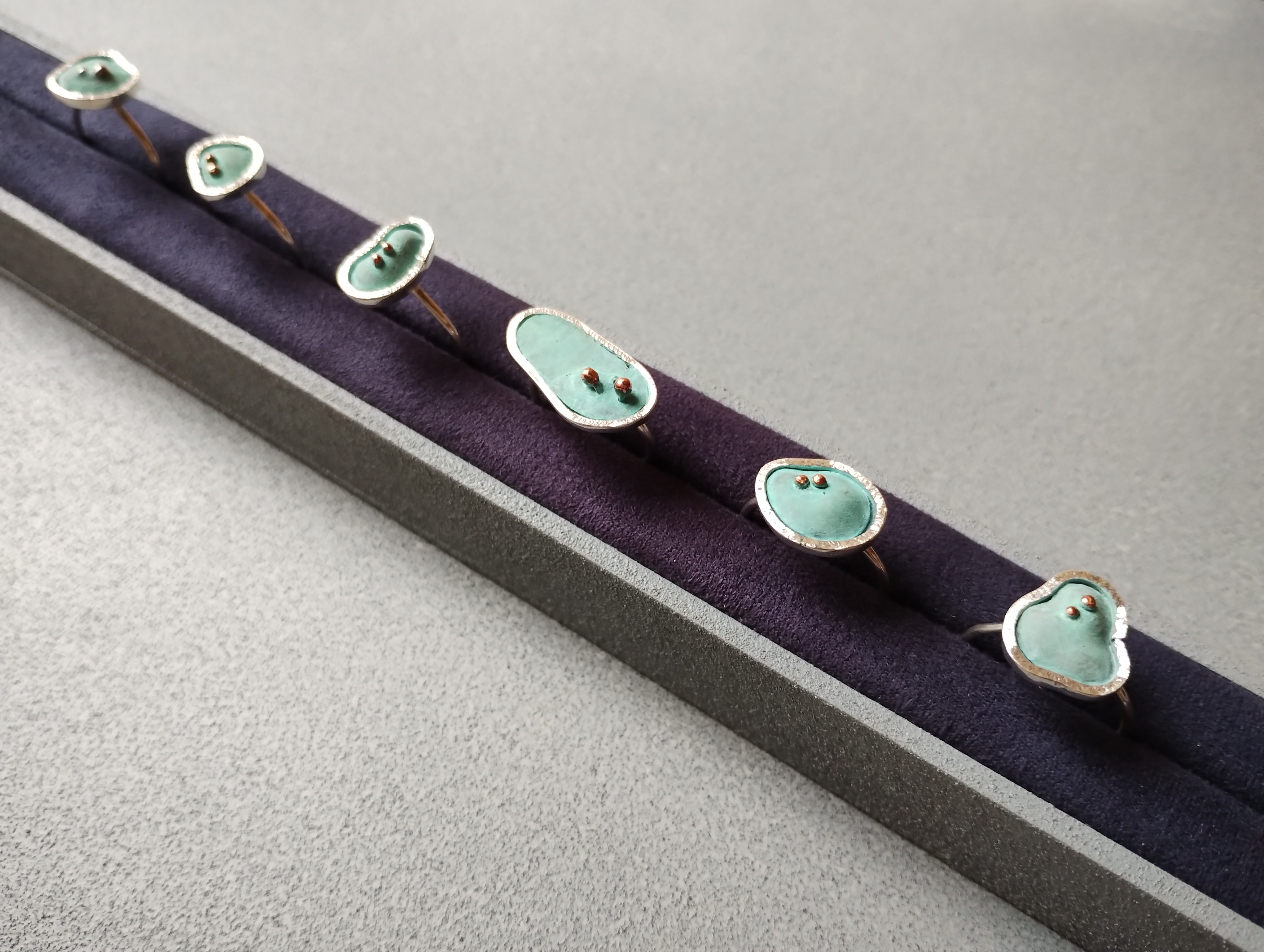 刀装具などに用いられる彫金の伝統技法や彩金技法を使った金属工芸のジュエリーを展開しています。