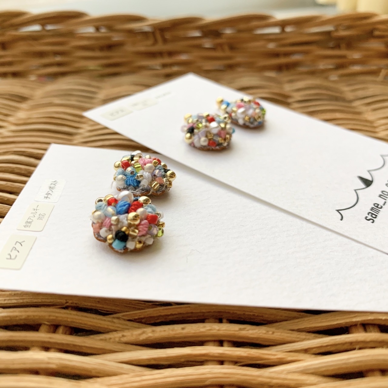 UKI 刺繍を主にさまざまな技法で布小物、アクセサリーを販売しています。 same no earring 刺繍でカラフルなアクセサリーの販売をしています。