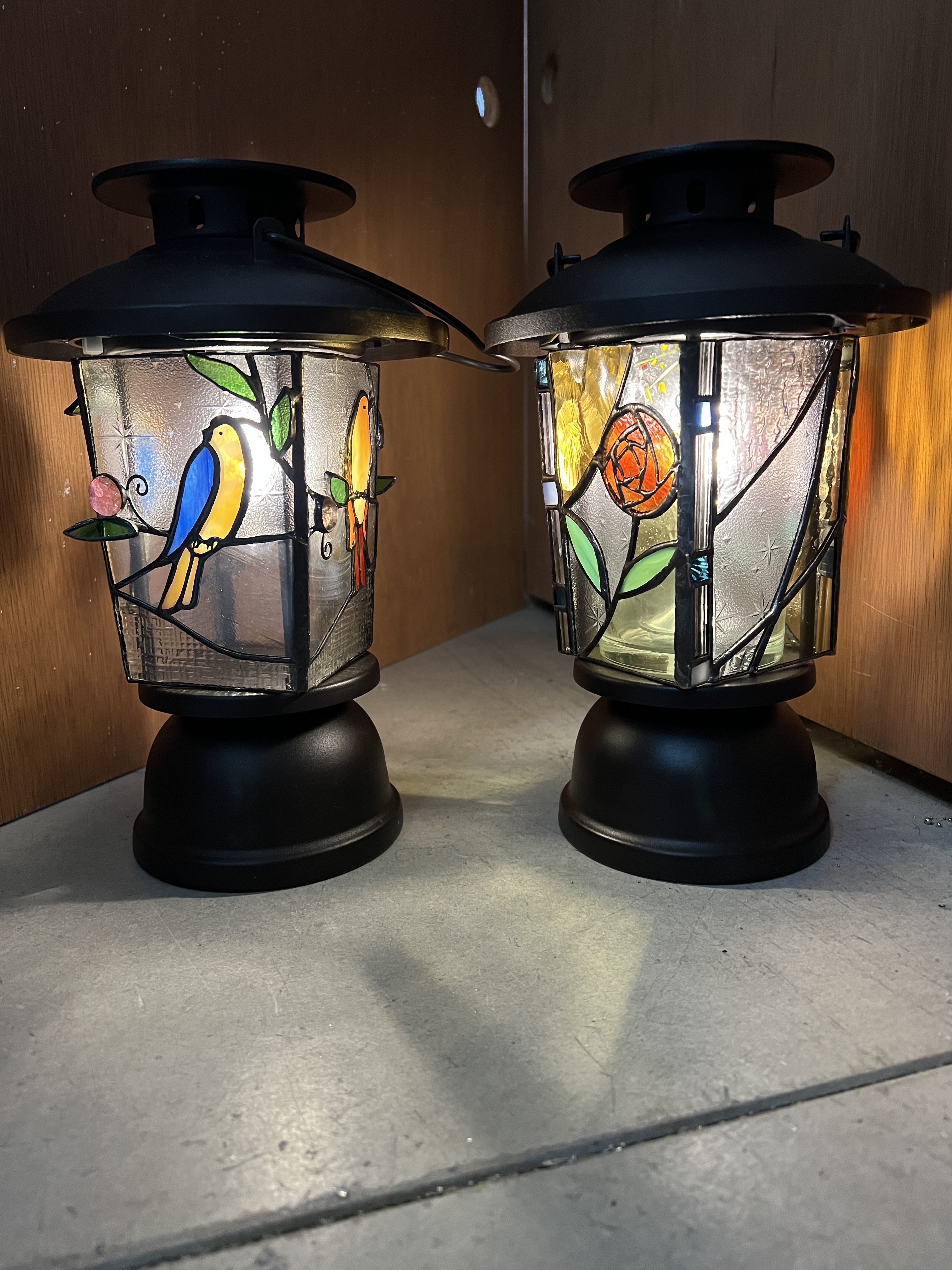 ステンドグラスのガーデンライト、キッチンランプ、フュージングのミニパネルなど