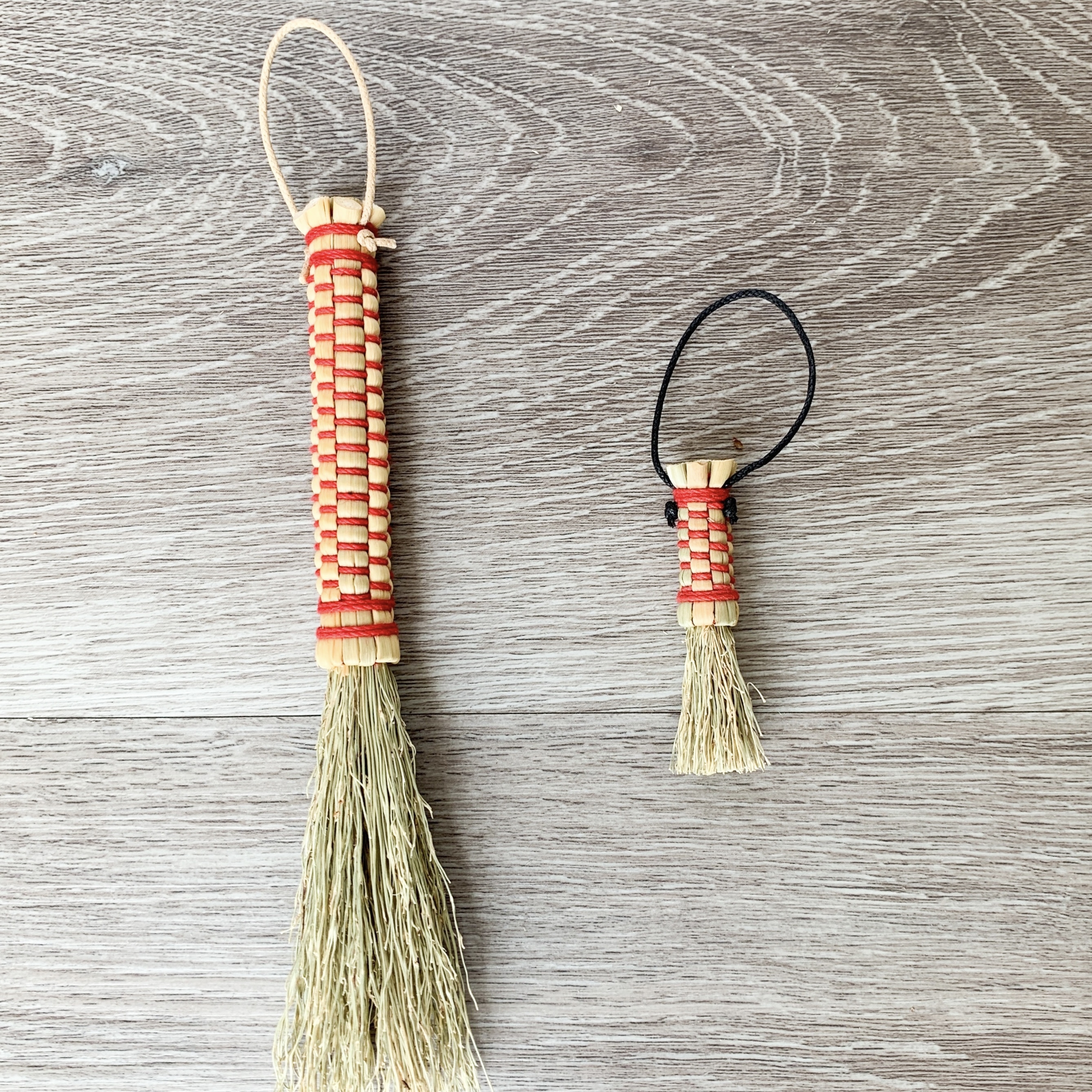 人と環境に優しい自然素材の手作りほうき。 材料作りから手がけ、畑で種から栽培したホウキモロコシを使用。機械等は使用せずに全工程を手作業で一本一本丁寧に作りあげております。