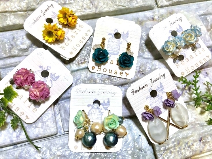 ペーパー素材で作る花のアクセサリークラフト「ロザフィ」「フラージュ」をメインに、お花モチーフのジュエリー・雑貨を制作しています。
