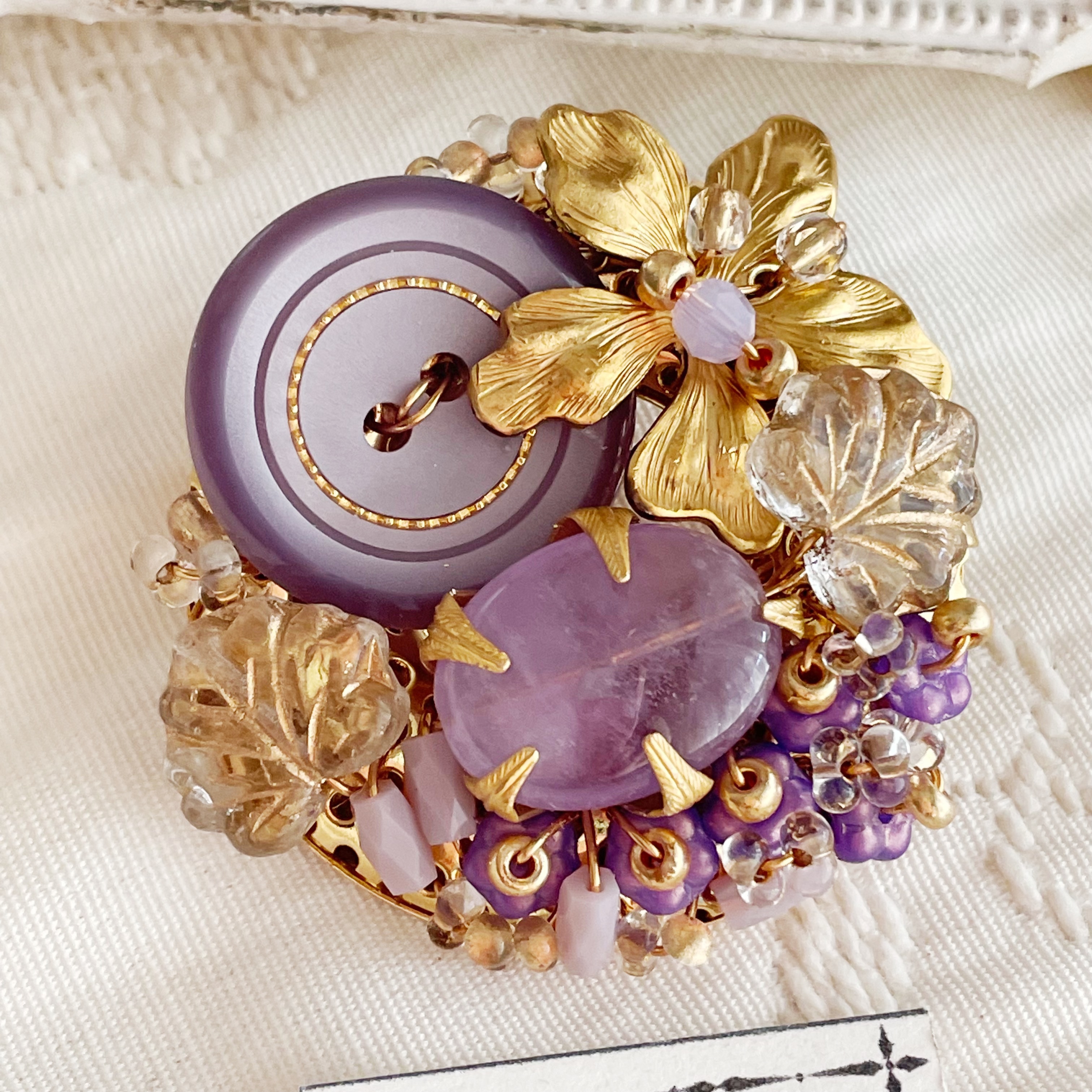 ヨーロッパガラス、日本ビーズ、天然石等を使った植物モチーフの一点ものアクセサリー、イヤーフック。