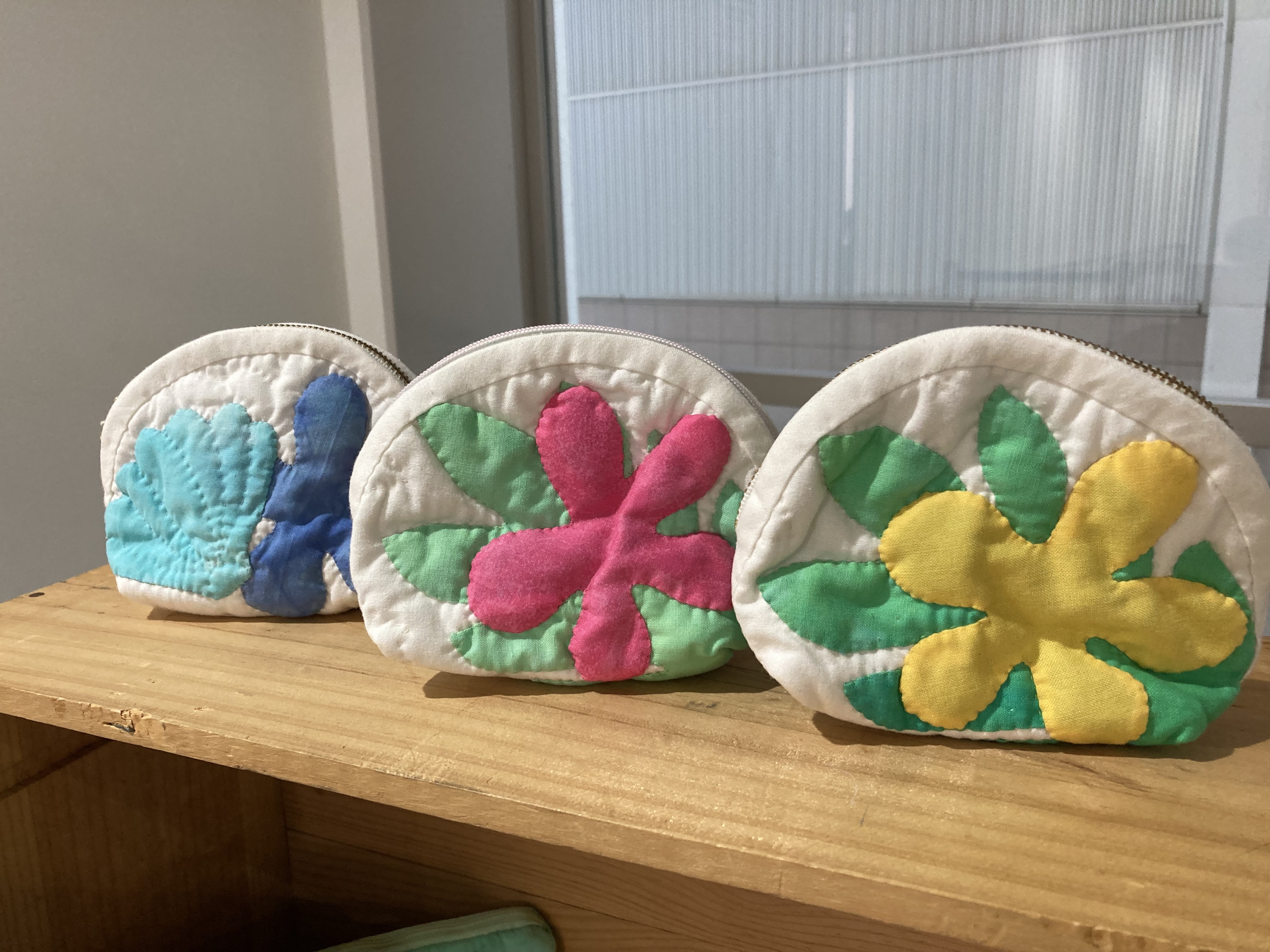 バック、ヘアゴム、ヘアピン、ハワイアンキルトのポーチなど ひと針ひと針丁寧に仕上げています。かわいいアイテムが揃っているので、ぜひ手にとってご覧いただけたら幸いです