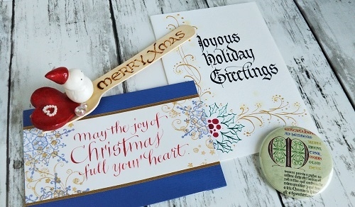 カリグラフィーの手書きカードを中心に、手書きのアルファベットモチーフのアクセサリーなどの小物も揃えます。