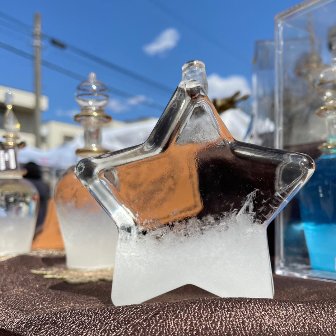 19世紀の航海士が天気を予想する装置として使用していた【ストームグラス】を可愛いガラスビンに詰め込みました。