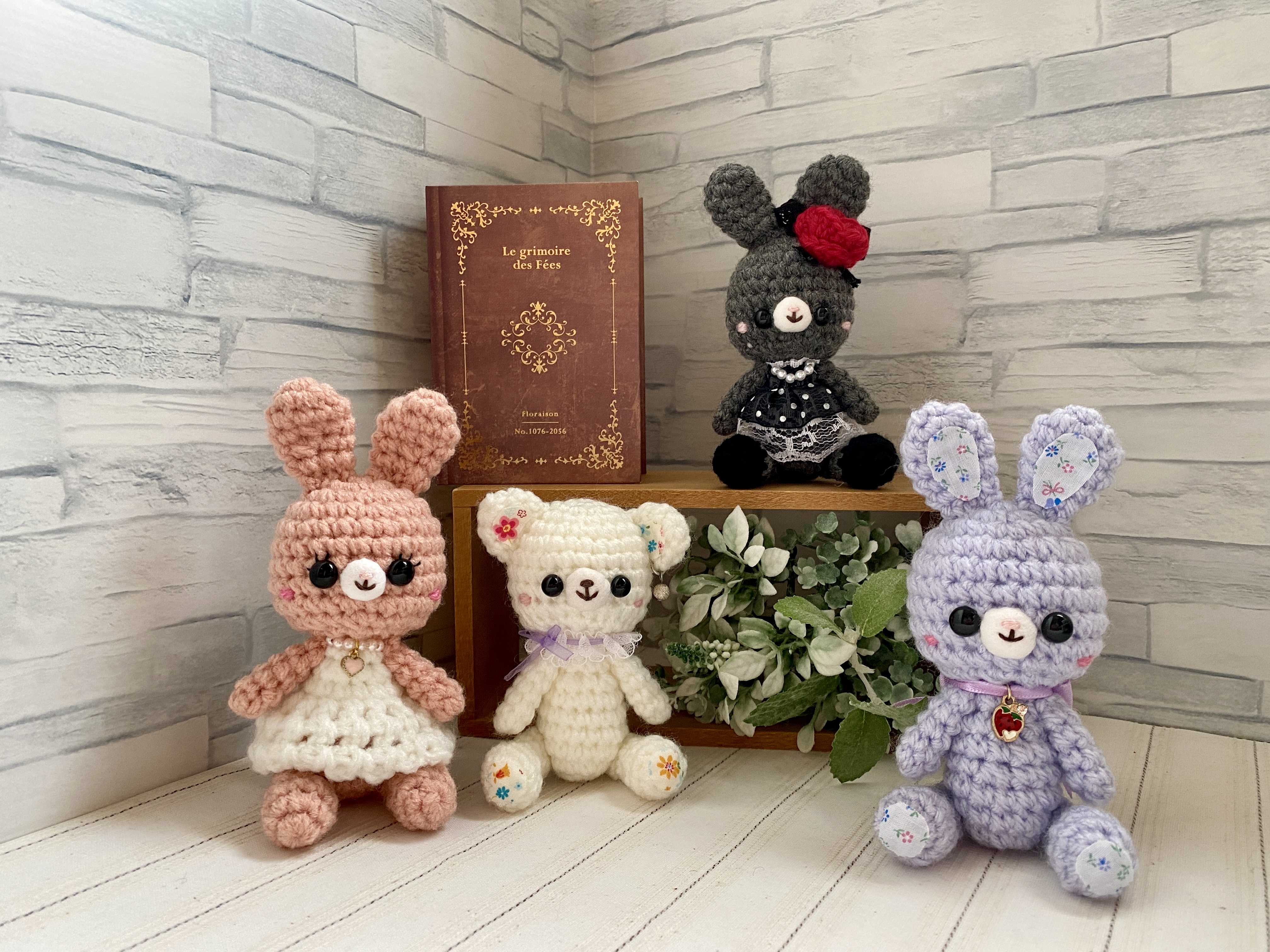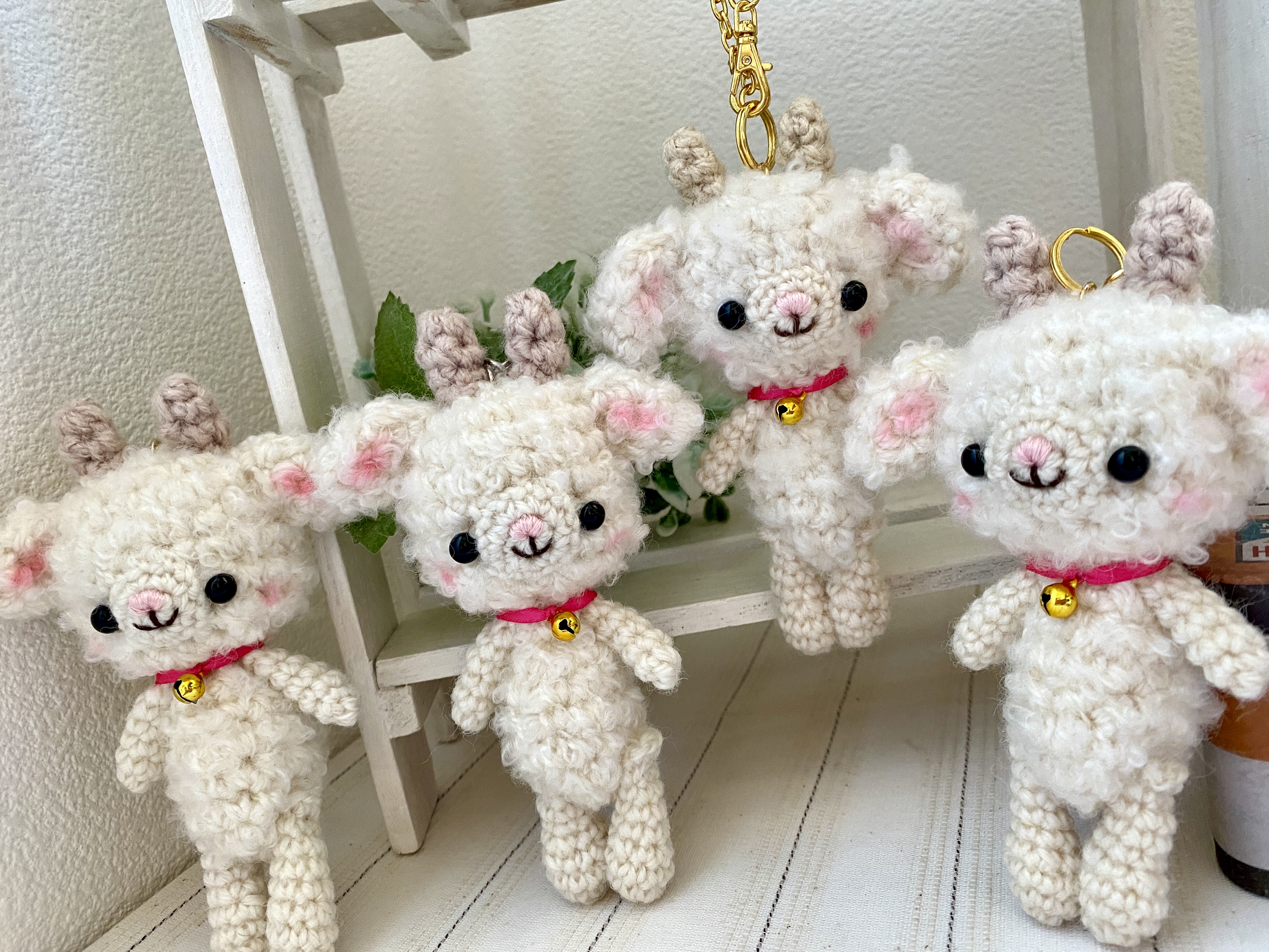 毛糸を編んで作る人形あみぐるみ。ヘアゴム・ストラップ・人形と種類が多いので、お子様から大人まで喜んでいただけます、