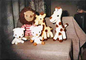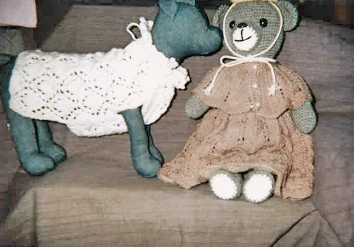 帽子・ベスト・動物の編みぐるみ。お人形の着せ替え(リカちゃん、メルちゃんのワンピース)。お店では売っていない(ワンピース・帽子・バック)