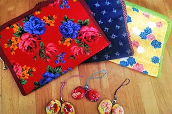 古着、着物等布を使って作品を作り、毎日一針一針楽しんで作っています。人との話をして、一日があっという間に過ぎ、若返りには最適です。