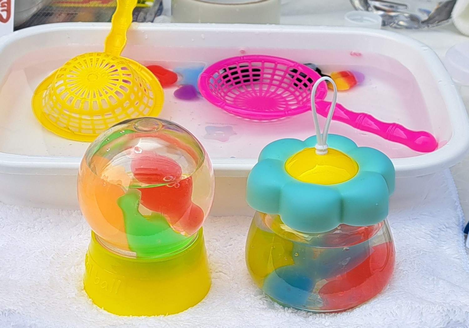 ④しばらくすると、だんだん固まって、ボトルに入れて水族館の出来上がり。