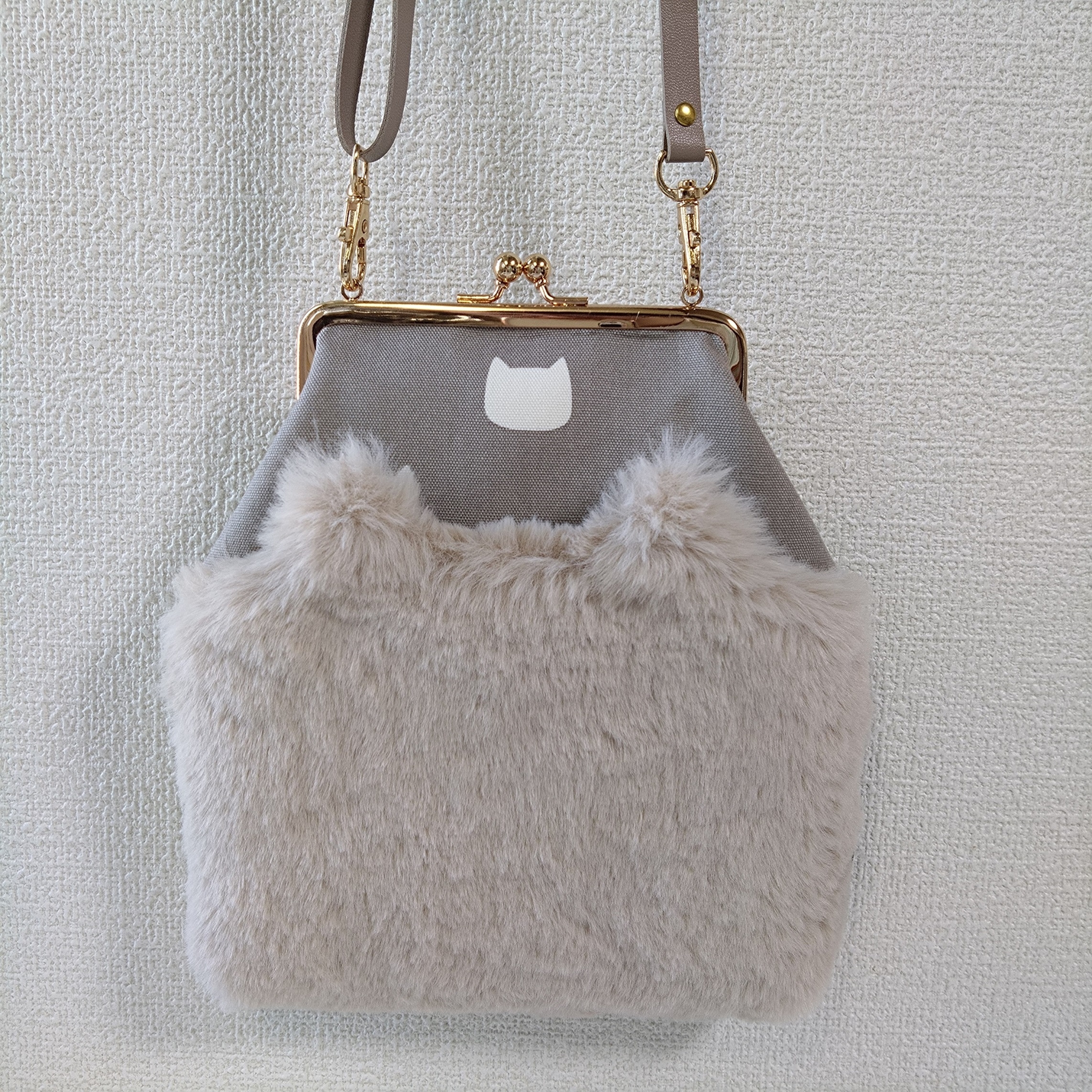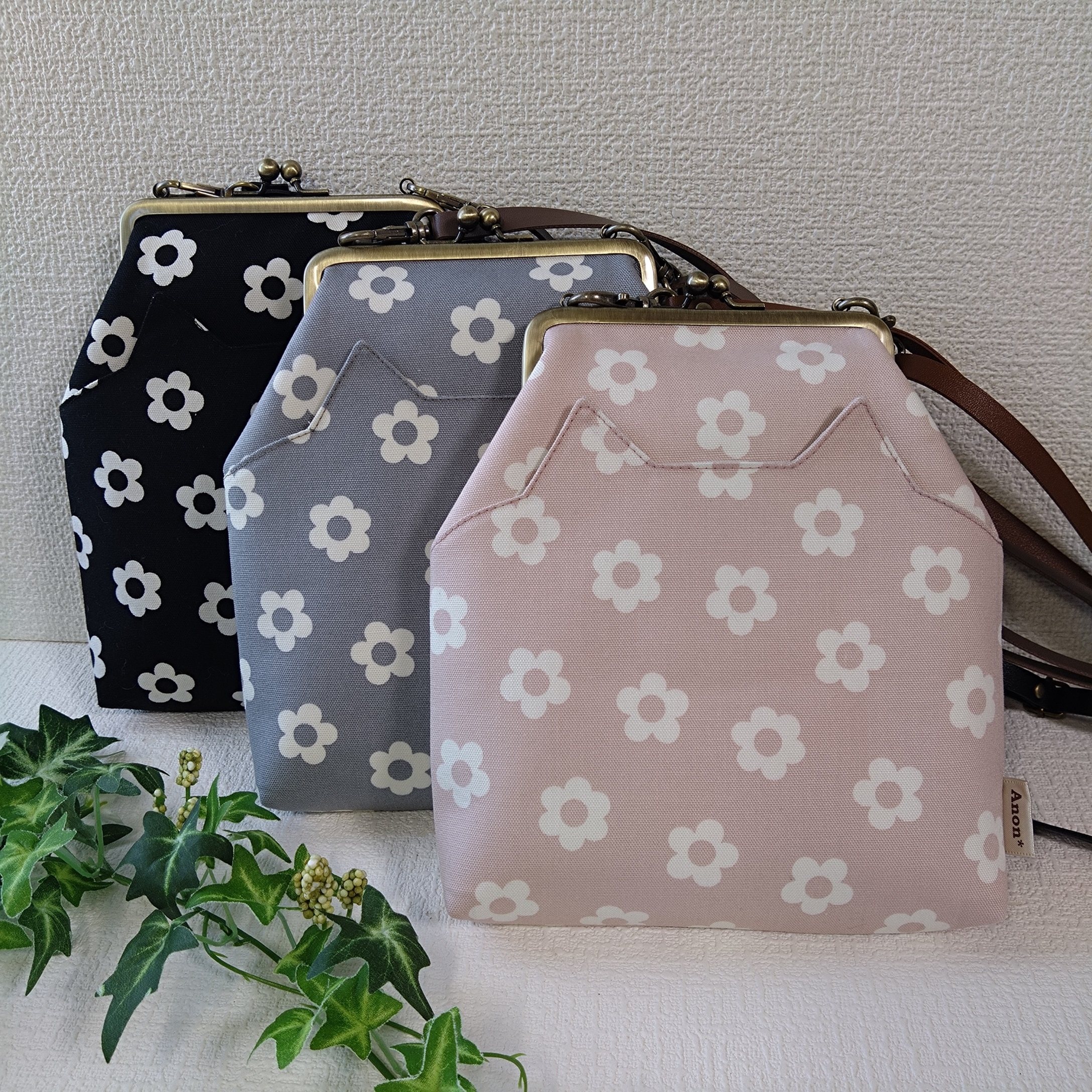 猫ちゃんの顔の形のポケットのがま口は、型紙からおこしたオリジナル作品です。