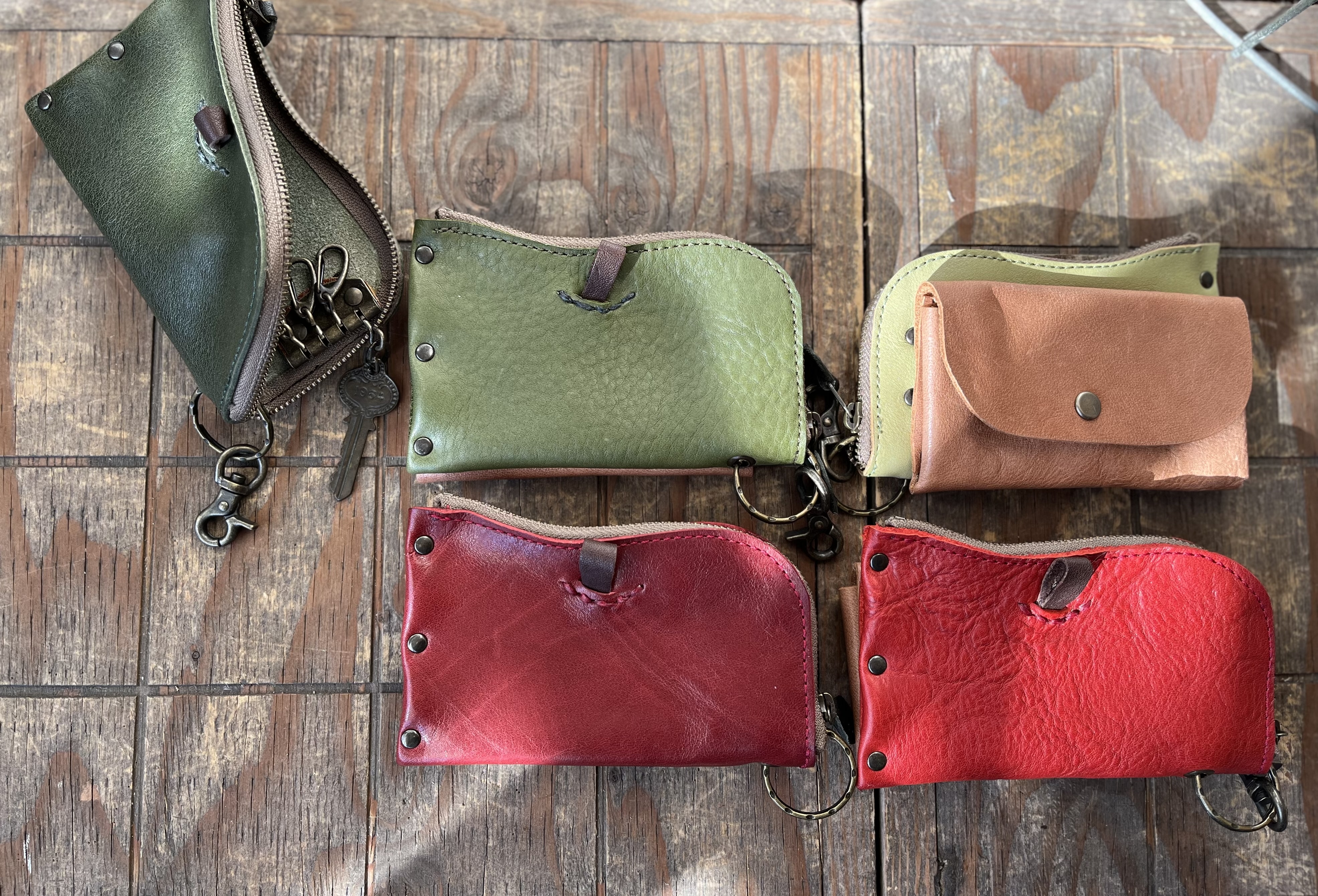 気に入った革の組み合わせでオリジナルのリュックショルダー、財布、小物等を楽しく使える様なデザインと明るい色合わせで手縫いとミシンで仕上げています。