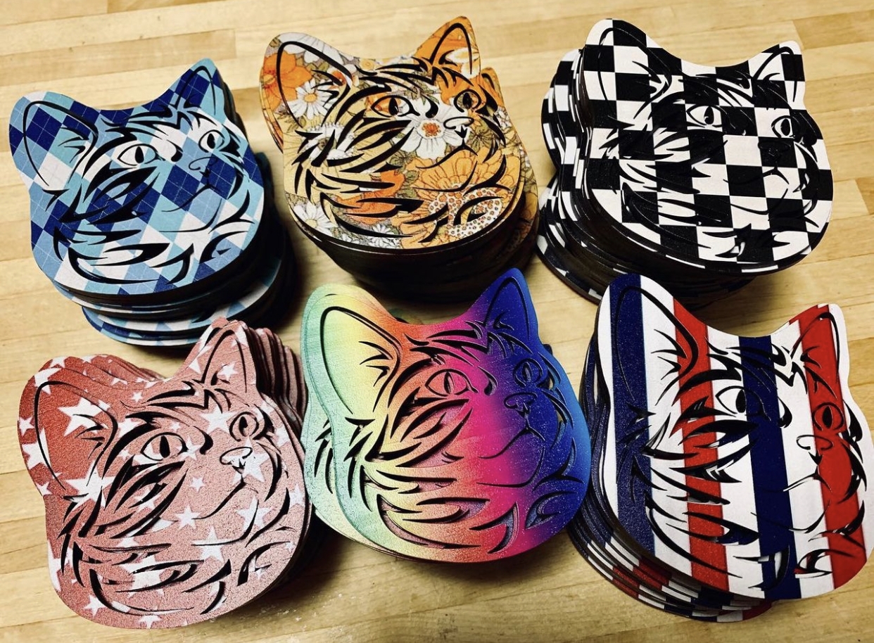 レーザーカッターで木の帽子や王冠ランプを創作しています