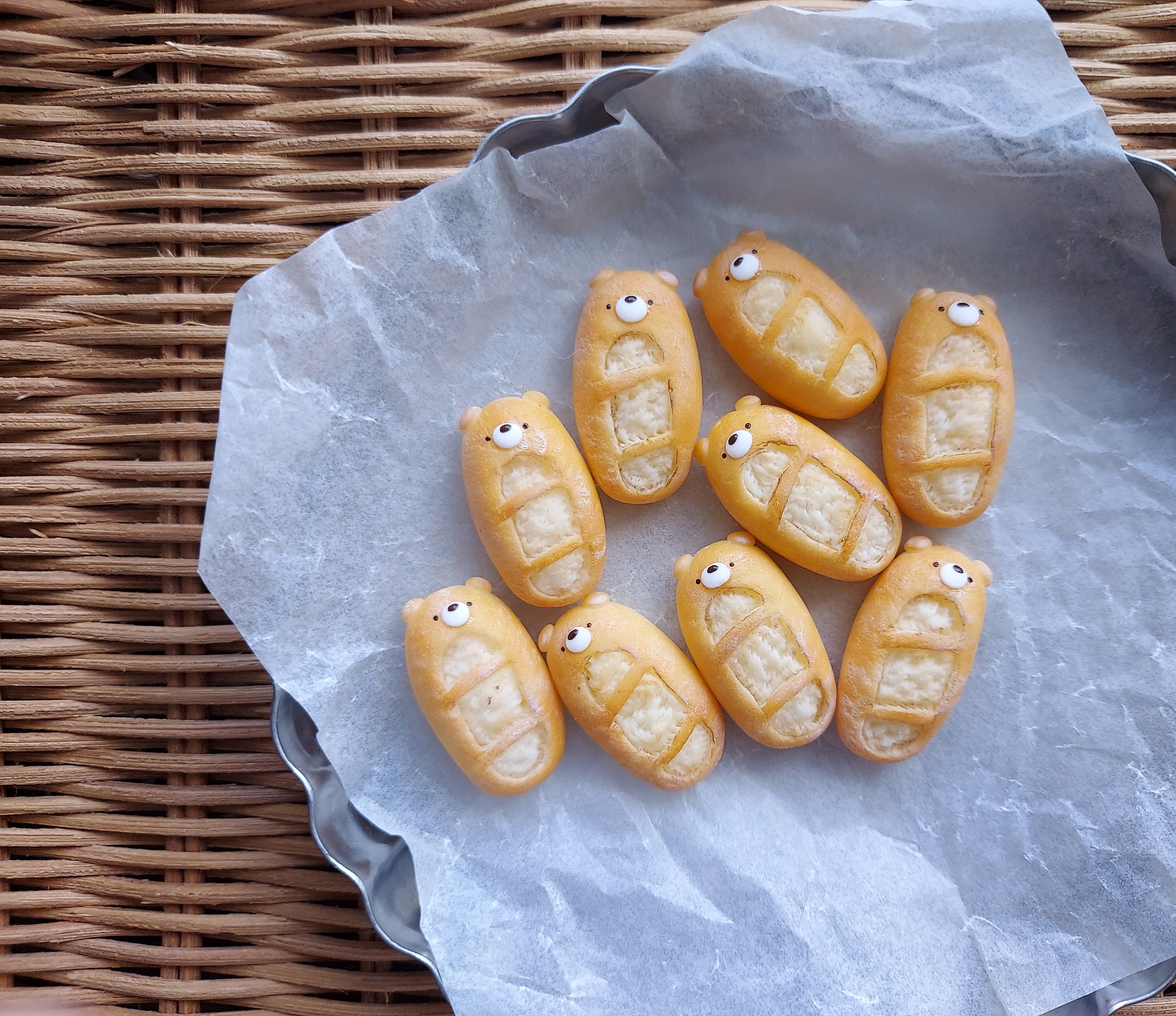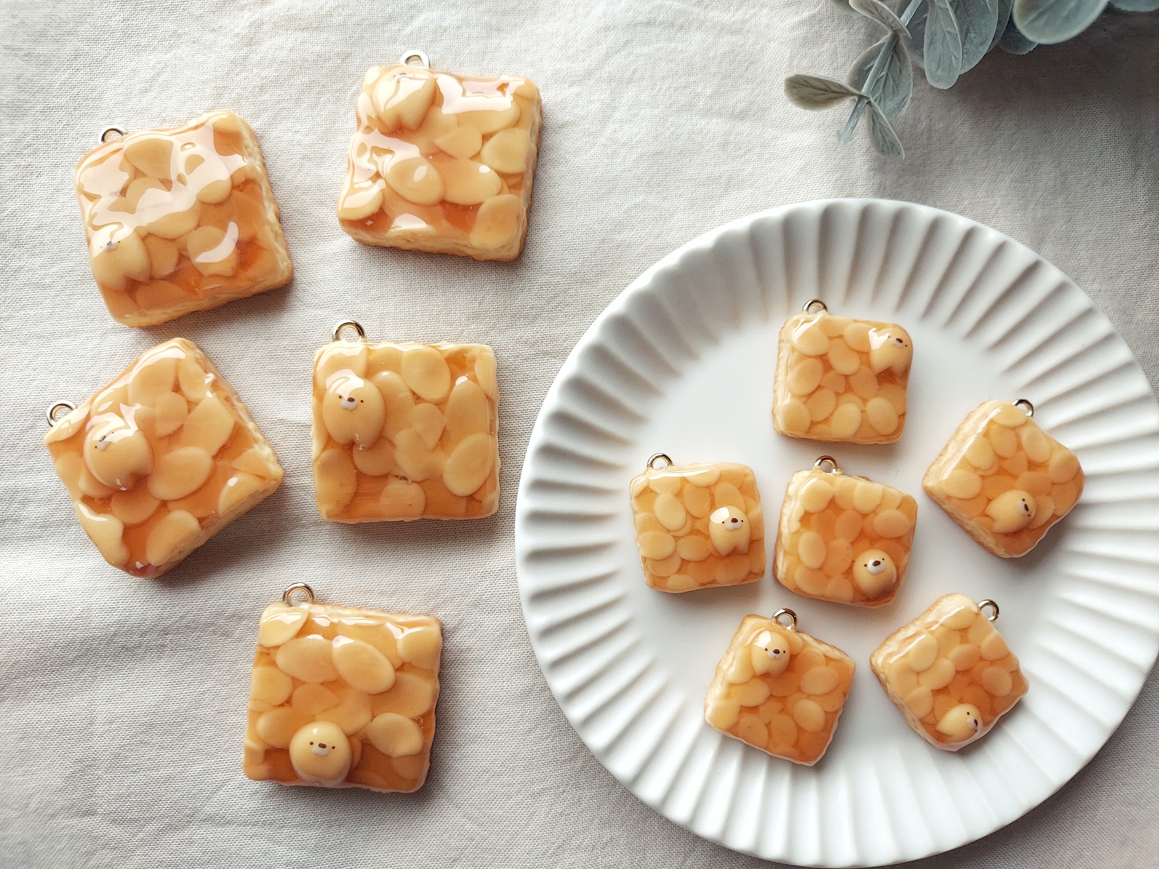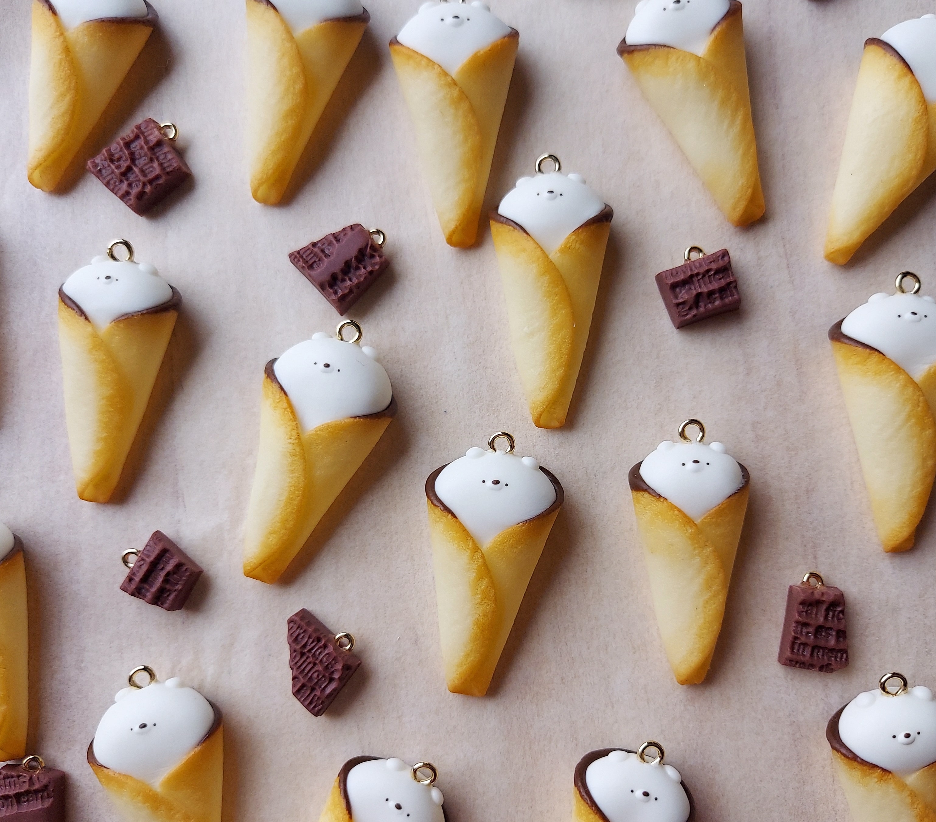主に樹脂粘土を使用し、くまやあざらしモチーフのミニチュアパンやお菓子のキーホルダーやチャームを制作しております。