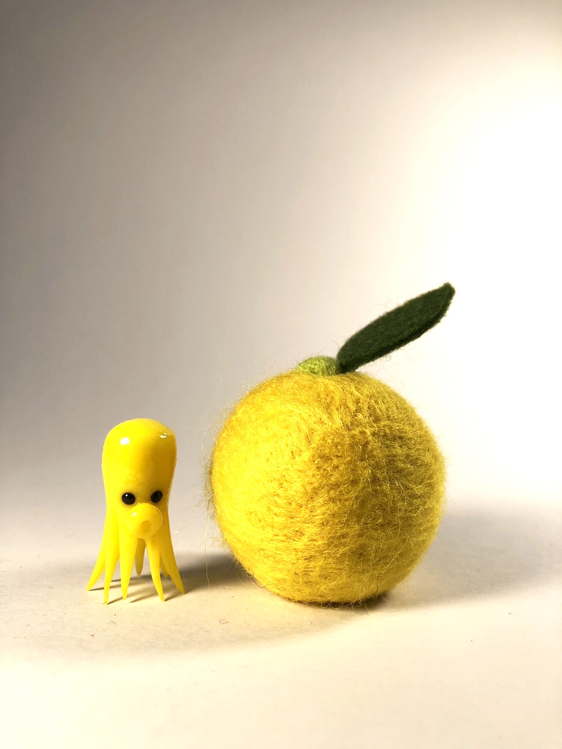 樹脂粘土のタコと羊毛フェルトのアフロでつくったオブジェ「タコアフロ」、 オリジナルイラスト、 張り子でつくった一輪挿しなどを販売しています。