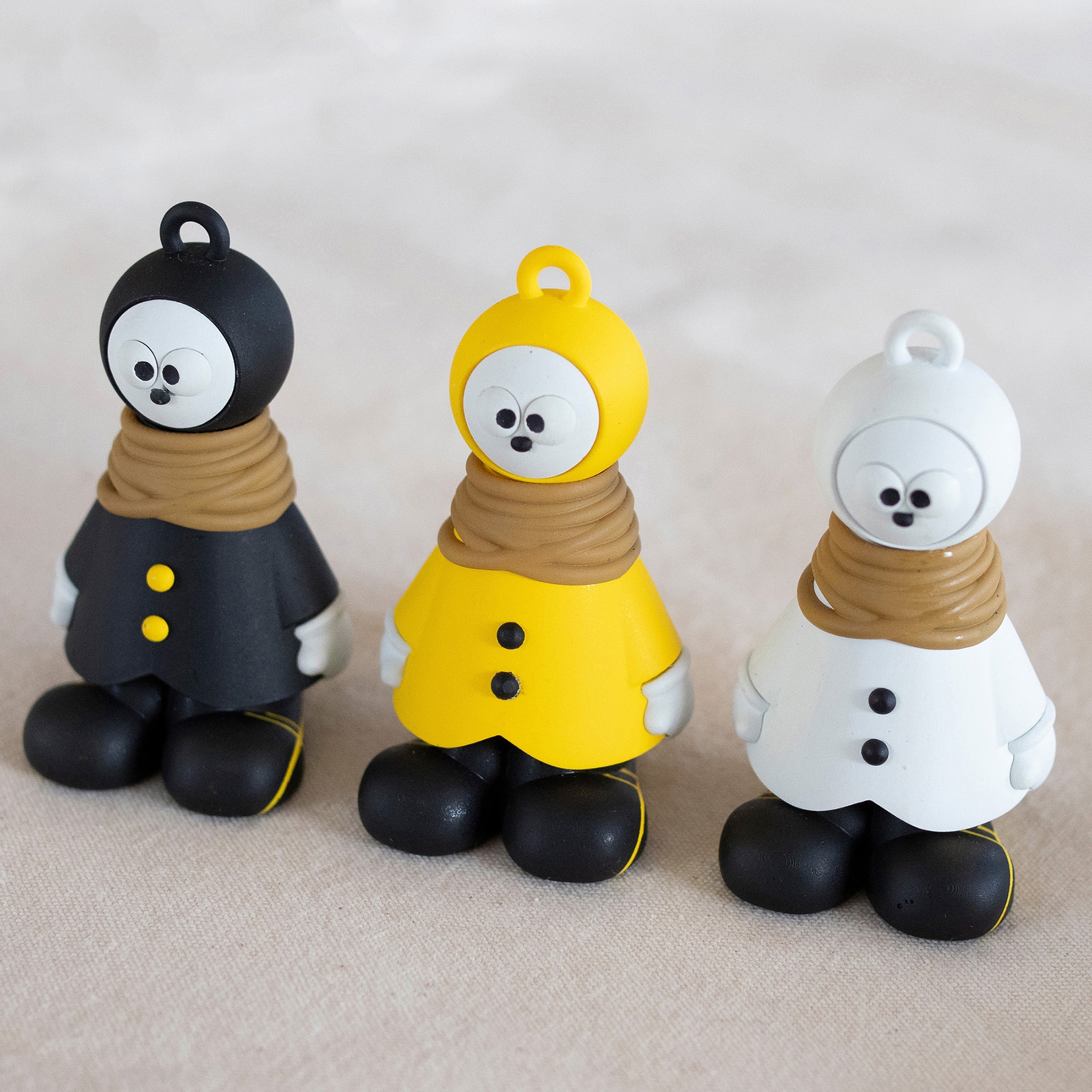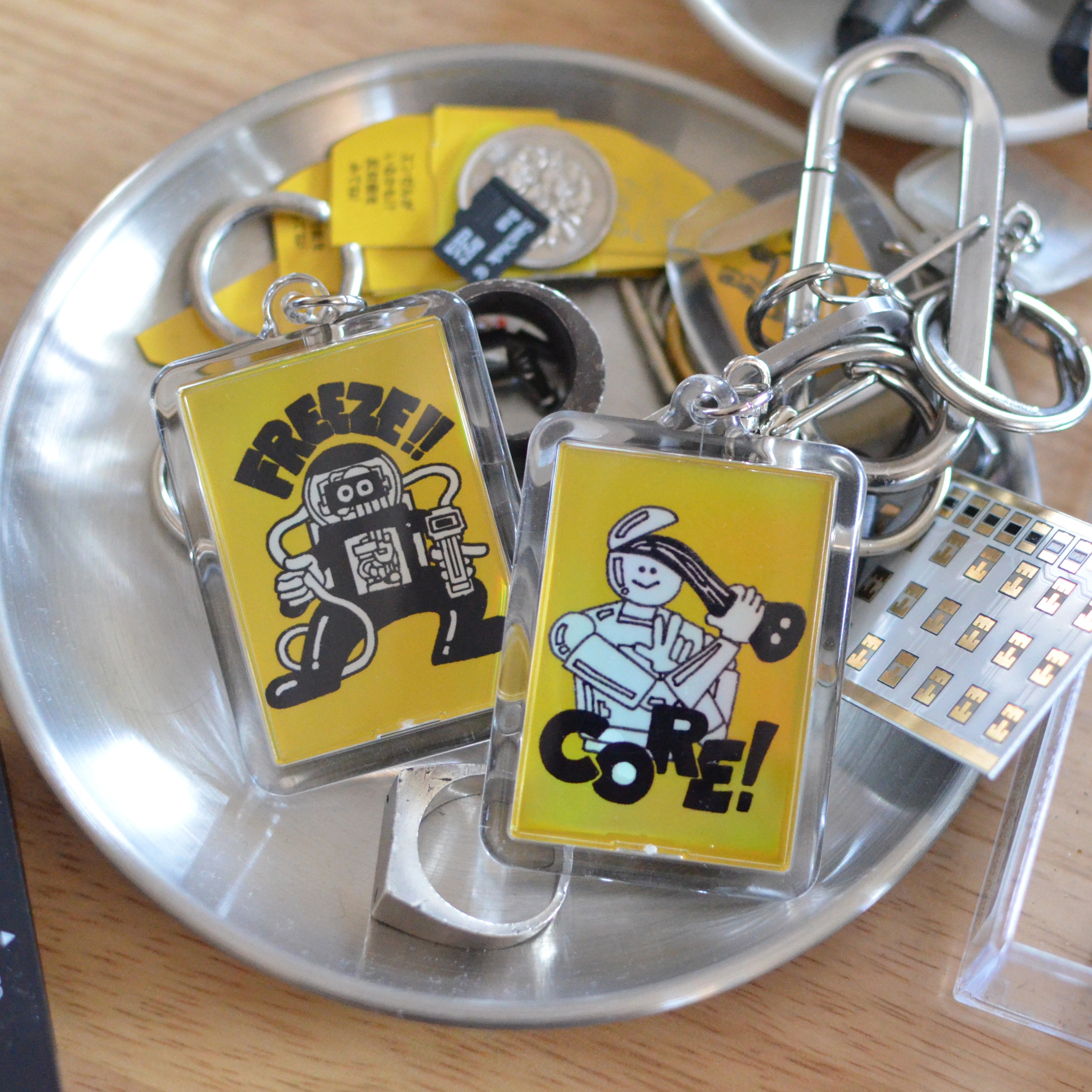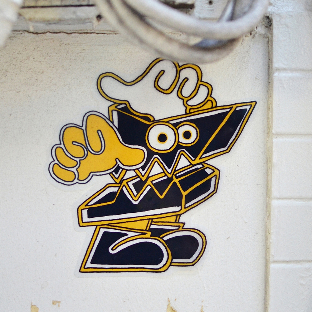 道具や部品、建築物、都市の光景など無機物をモチーフにしたキャラクターをモノクロとイエローの3色を基調に描いています。描いたイラストを用いたオリジナルのステッカー、Tシャツ、キーホルダー等を制作し販売しています。