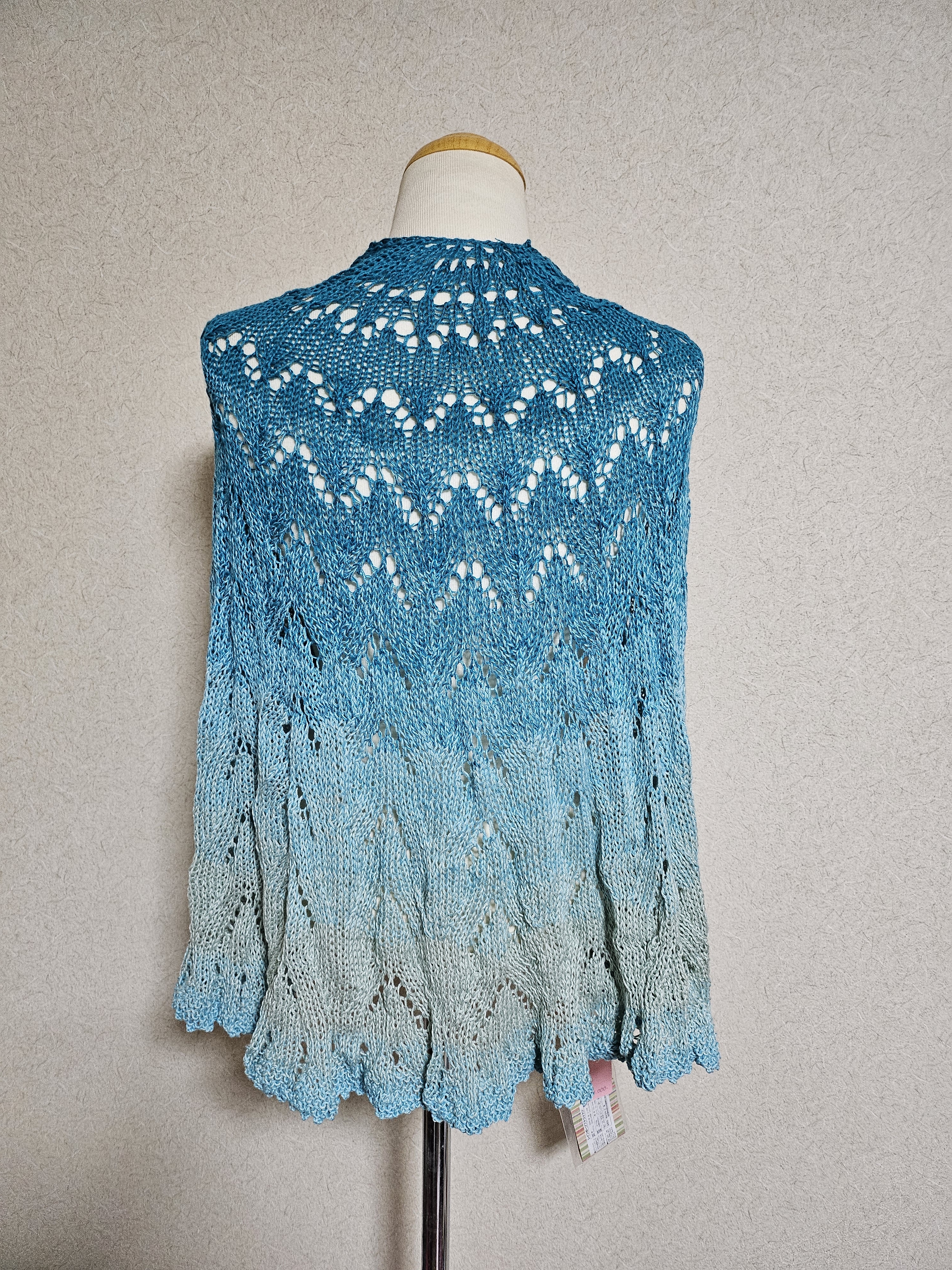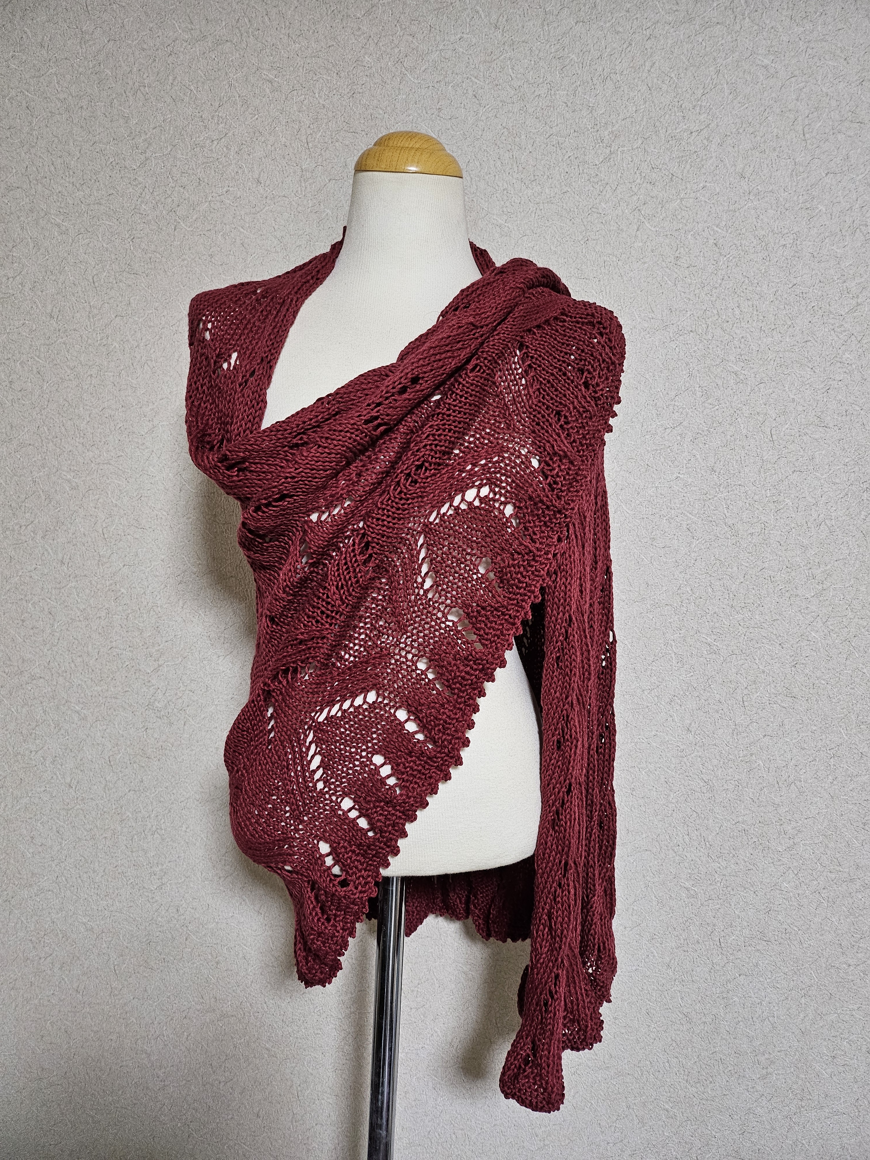 ショールは全て同じデザインですが、毛糸の種類を変えることで違ったデザインとして見えます