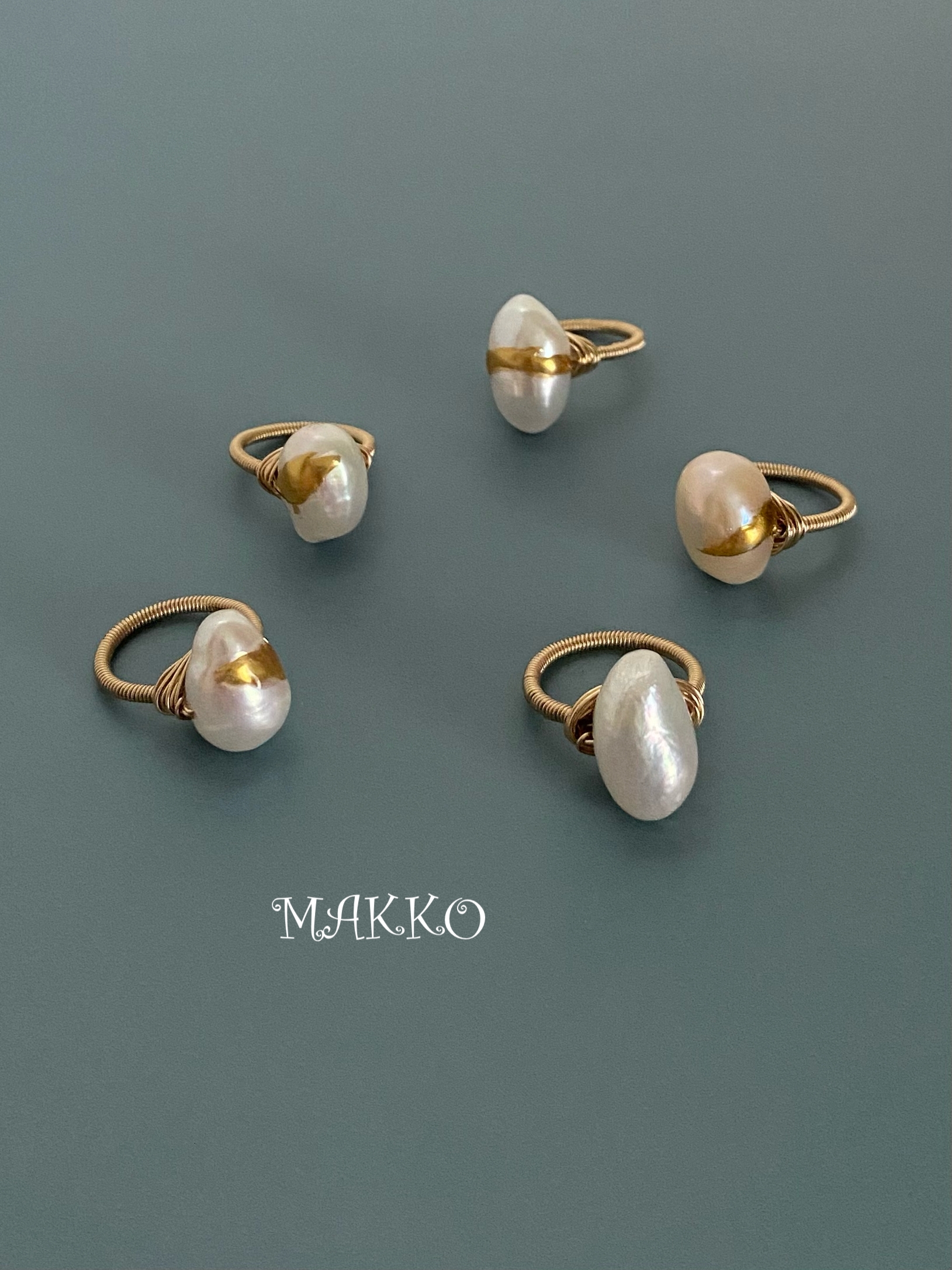 天然石のリースブローチやワイヤーを使った一粒リング、金継ぎからイメージしたシリーズ等、淡水パールや天然石を使用しトータルでお使い頂けるよう種類豊富にご用意してお持ちいたします。