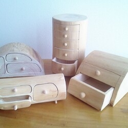森の手入れで生じた丸太を主な材料に木のおもちゃ・雑貨など、自然な木目や節なども木の個性としてデザインに取り入れて製作しています。