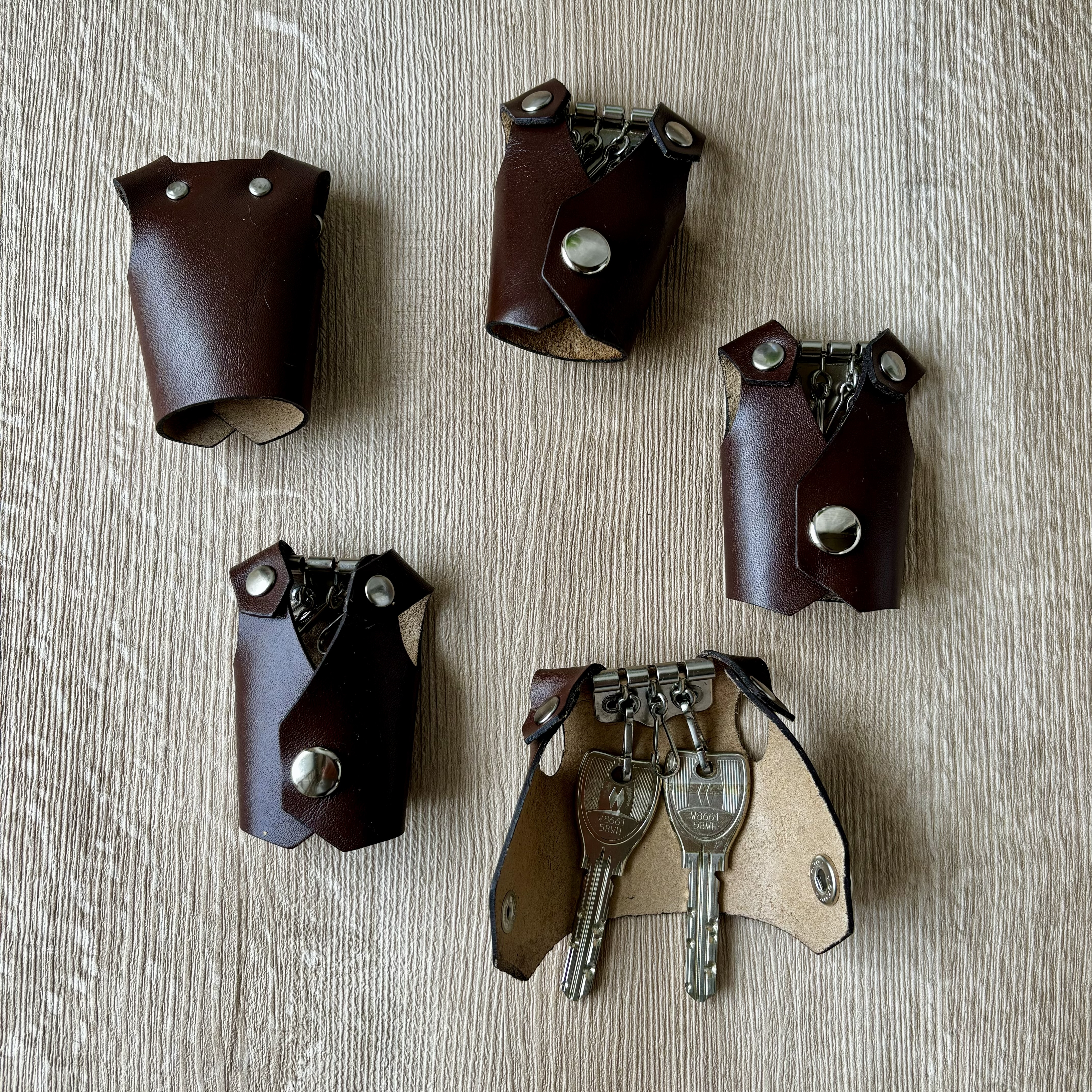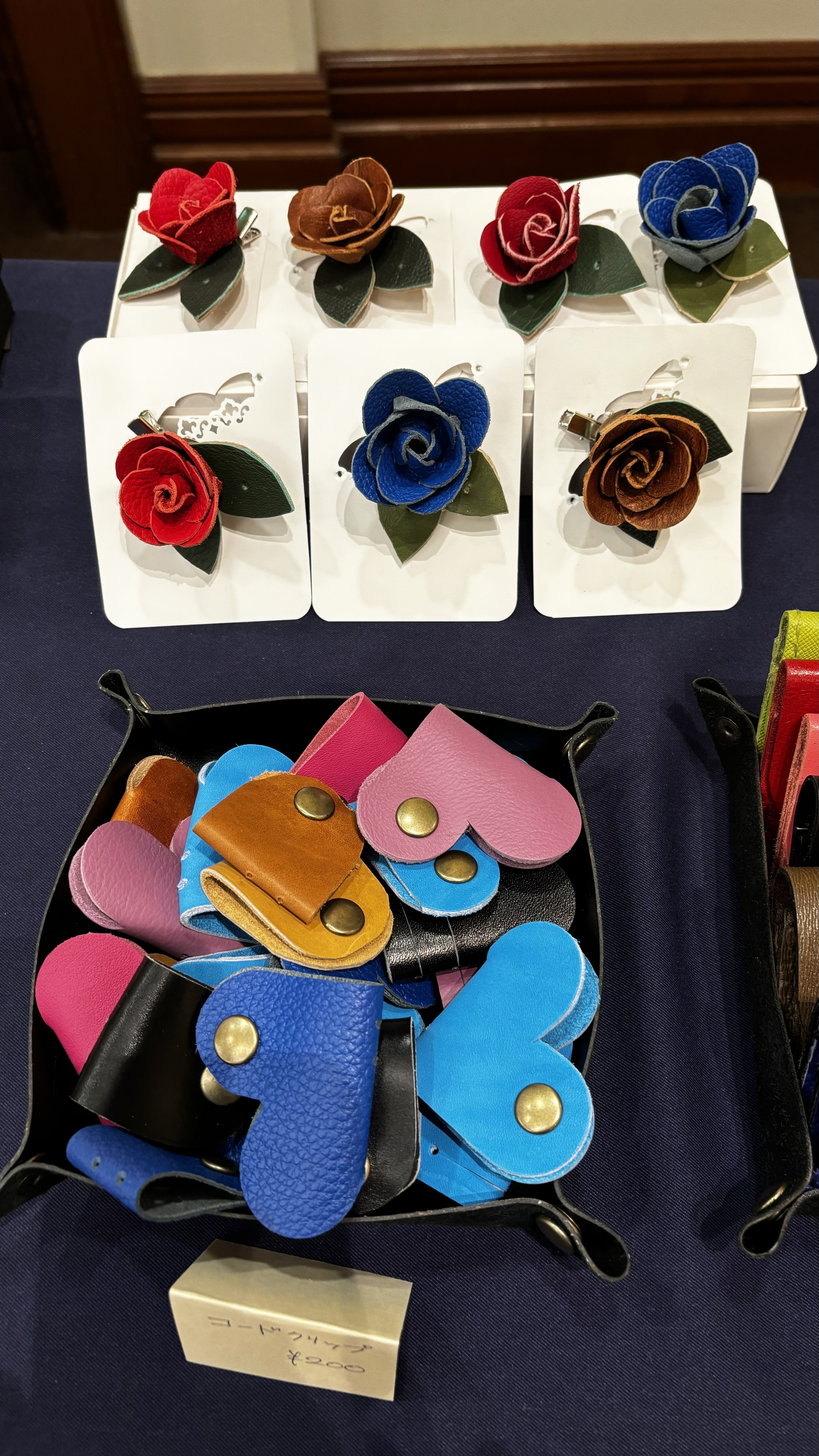 革のはぎれを切ったり貼ったり縫い合わせたりして小物を作っています