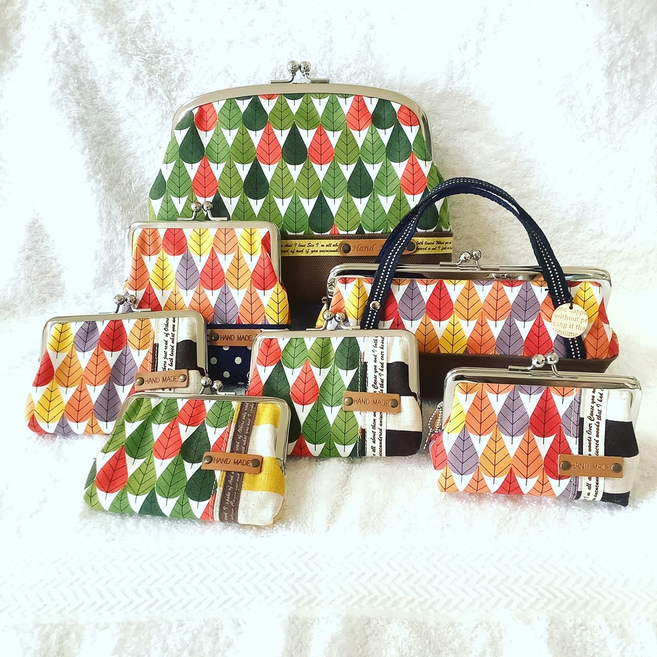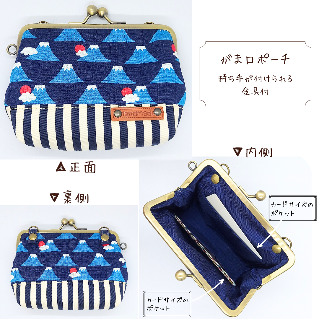 全ての商品、長く使って頂けるよう飽きのこないシンプルなデザインを心掛けながらも、生地の組合せには こだわっております。がま口は、ぜひ手に取って「パチン」と閉まる音を楽しんで下さい