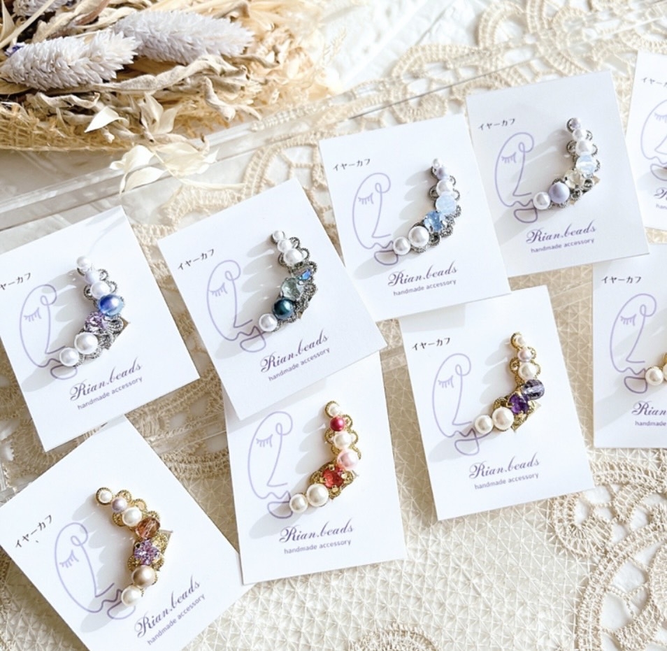 ビーズは繊細なステッチ技法を使ったものから、珍しいビーズを使った唯一無二の作品づくりを心がけています。布小物も柄選びにこだわっています。