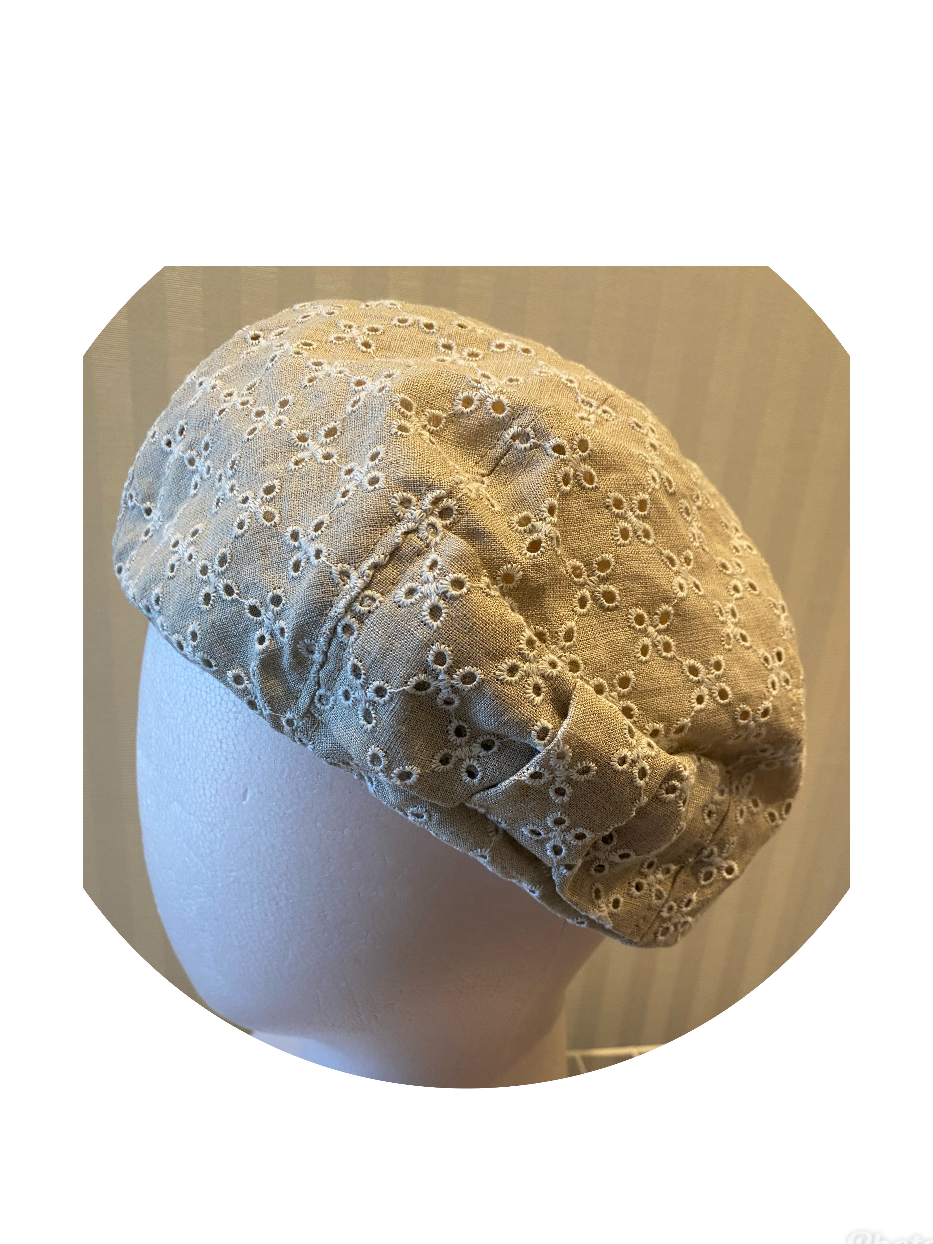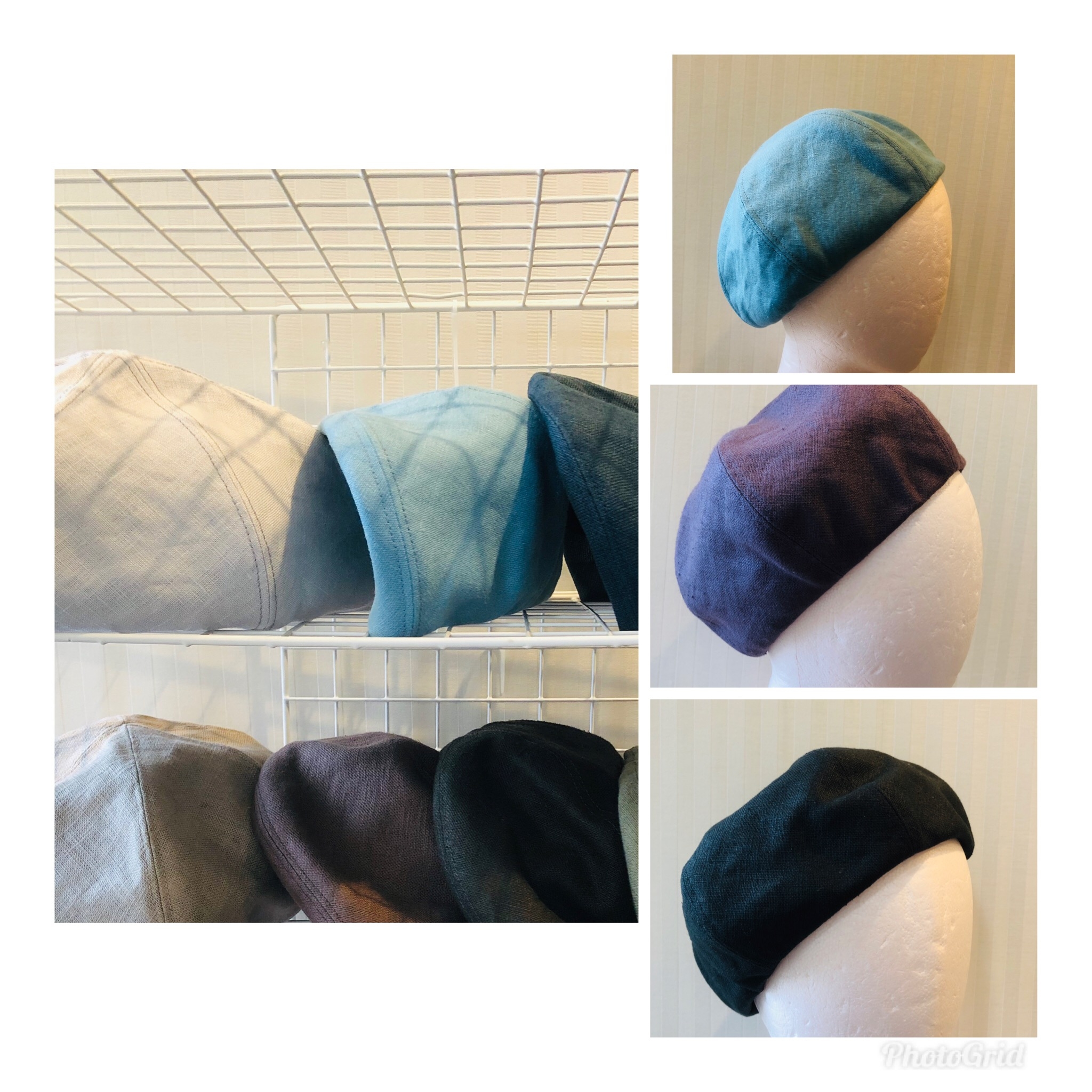 「大人可愛い」布の帽子です。 夏の麻のベレー帽、つばの広い帽子、キャスケットなど、 オリジナル帽子専門です。 サイズ調整テープを使用しています。