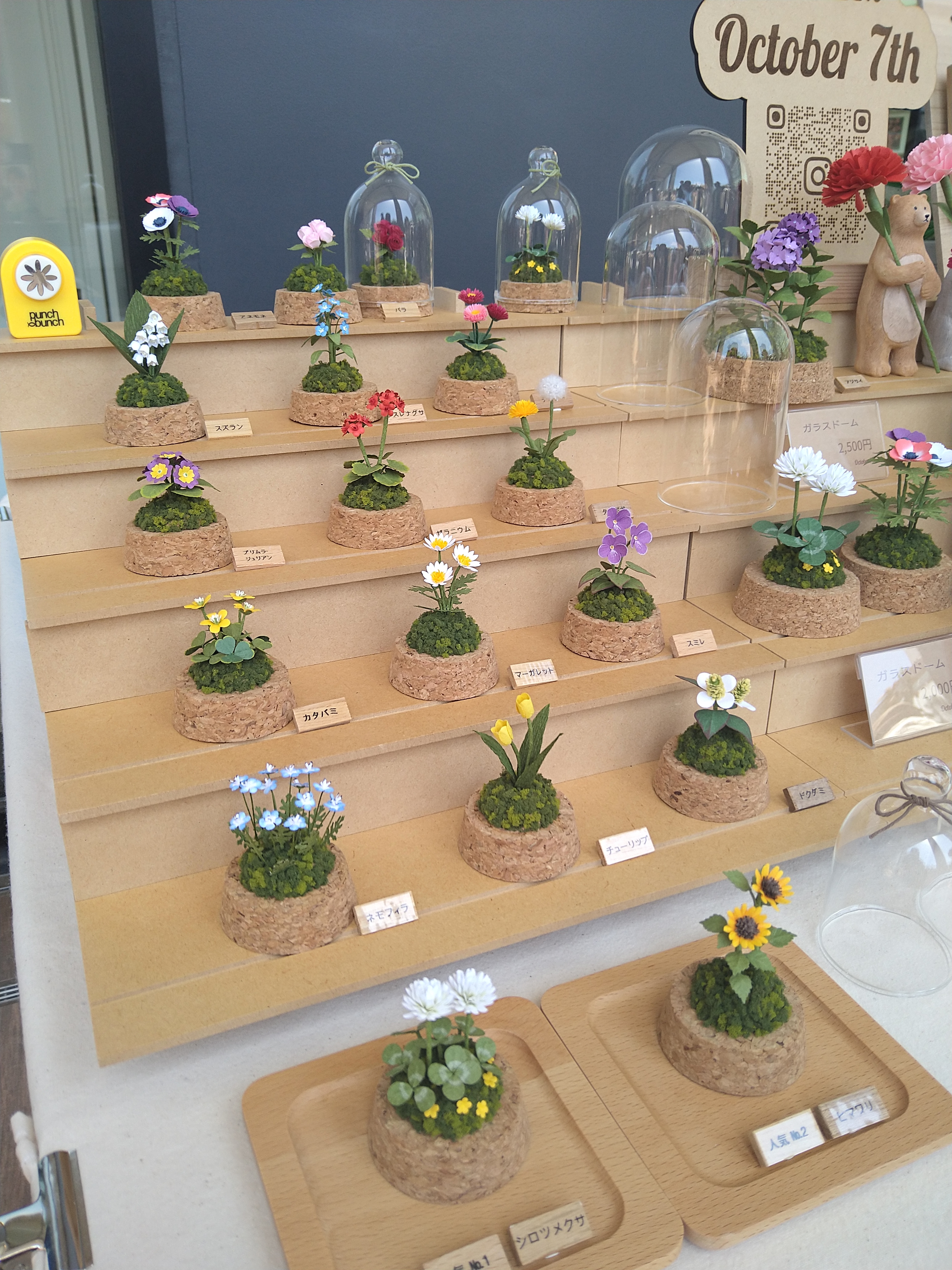 クラフトパンチで抜いた紙型から立体のお花の小さなガラスドームを制作しています。とても可愛いサイズでプレゼントにも大変喜ばれています。是非一度お手に取ってご覧下さい。