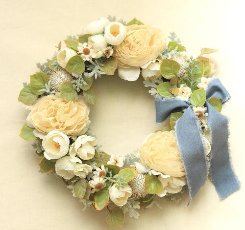 「ささやかな幸せ」と「物語」を大切にして、アートフラワーを使ったフラワーリースなどフラワー雑貨や天然素材のワックスを使ったアロマワックスサシェを作製しています。 春いっぱい色とりどりの花を使った作品を皆様に楽しんでいただけたらと思います。
