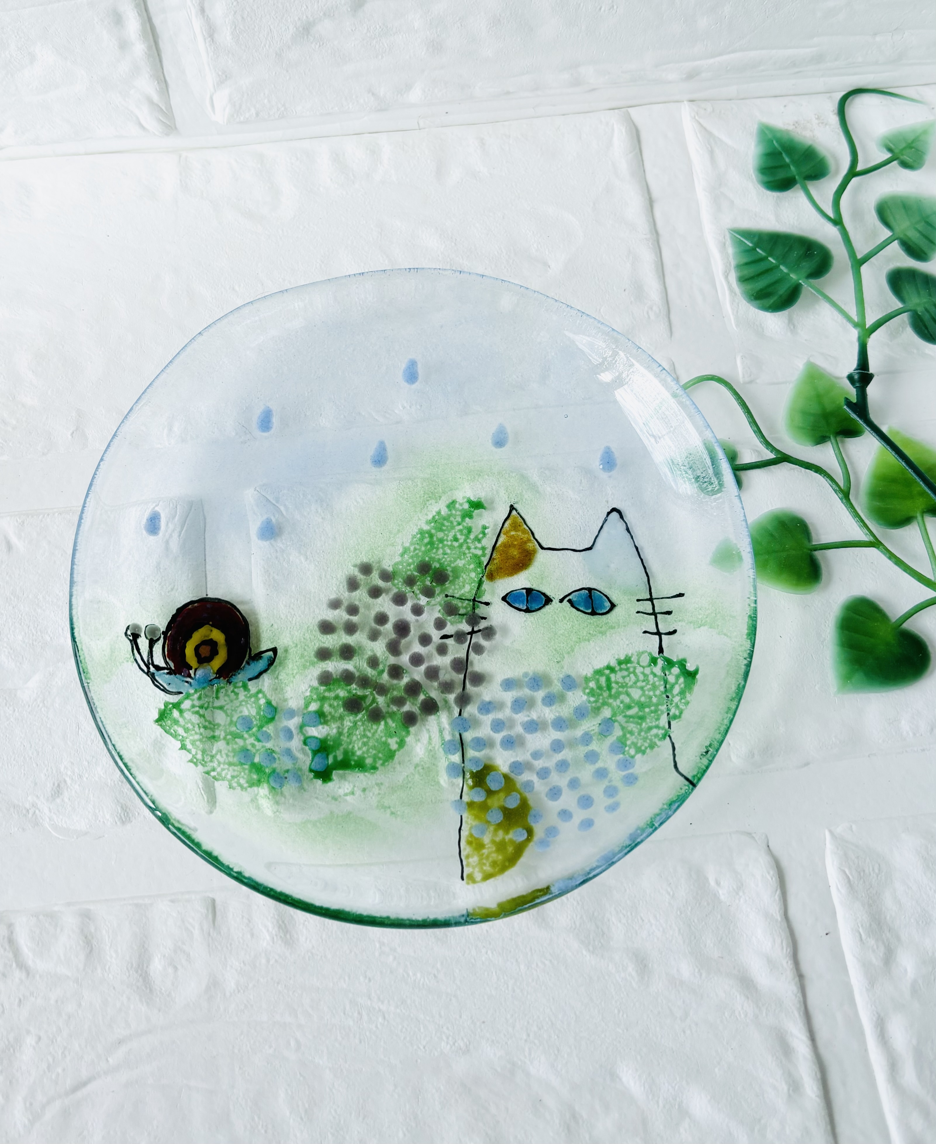 色とりどりのガラスで動くアート作品や鮮やかなお皿などを作成しています