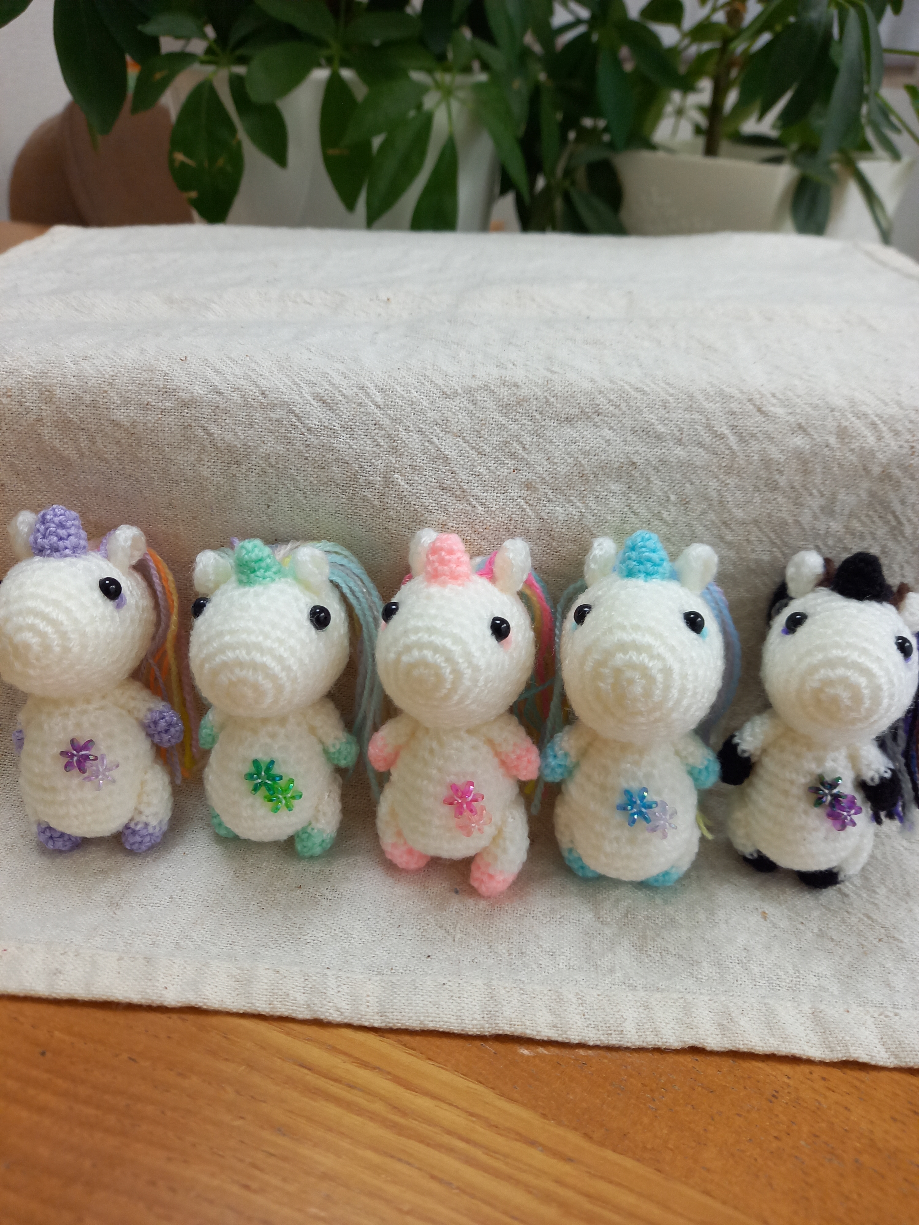 手のひらサイズのあみぐるみです。 カラフルな糸で色々な動物や鳥を作っています。