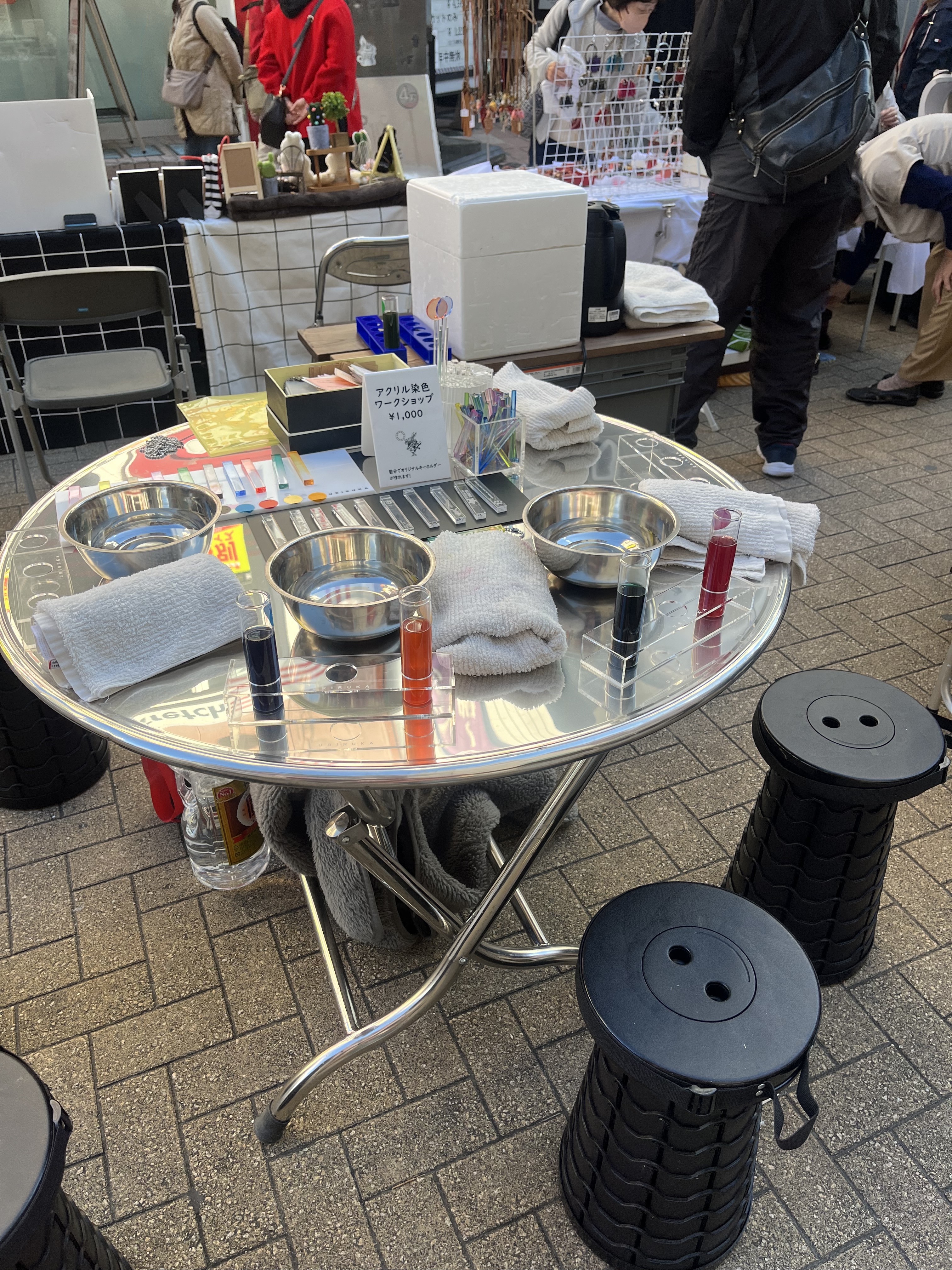 アクリル板の端材を使って染色体験する、ワークショップです。