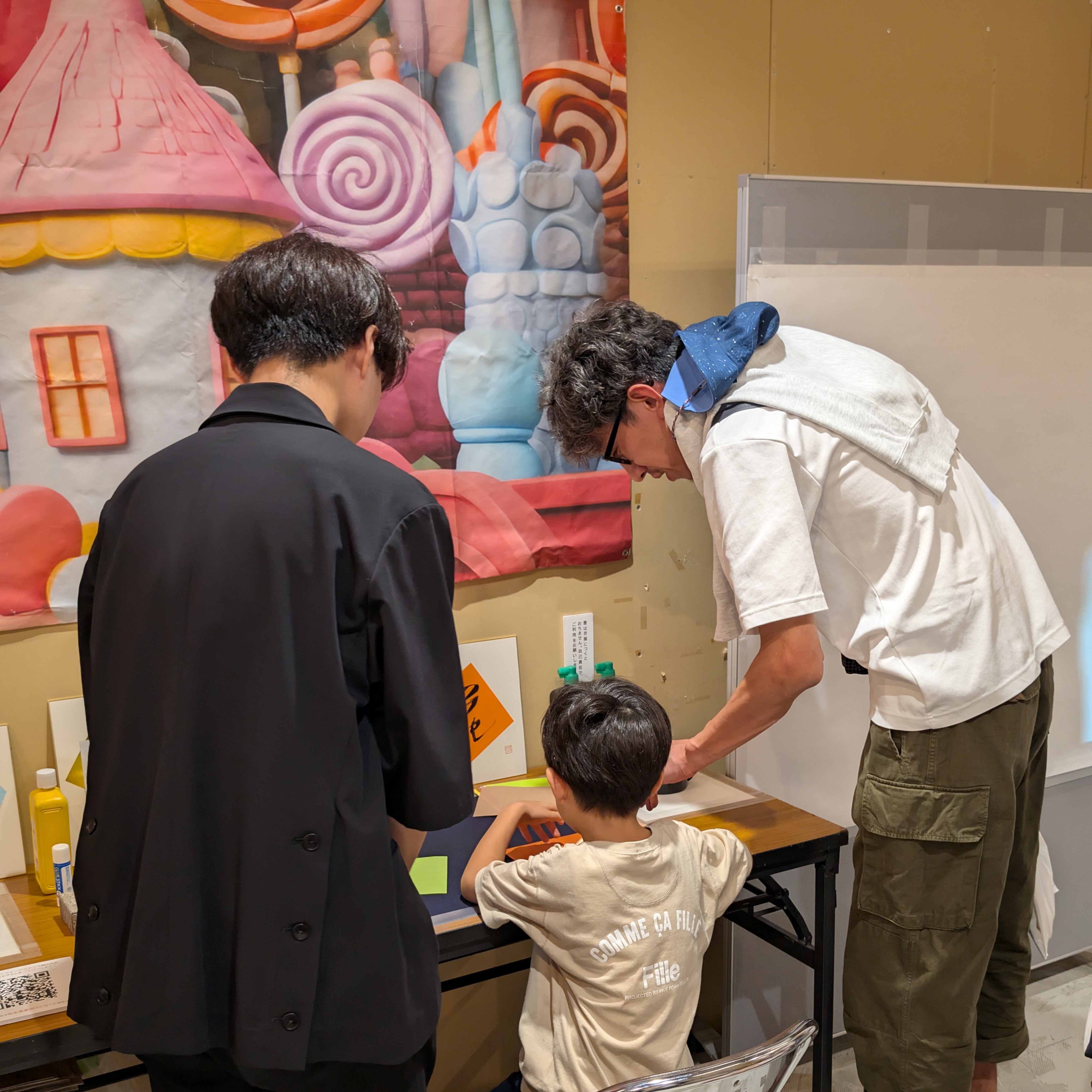 1.書きたい文字を考える 2.お手本を見ながら練習する 3.色紙と折り紙を使ってキャンバスを作る 4.キャンバスに文字を書いて完成