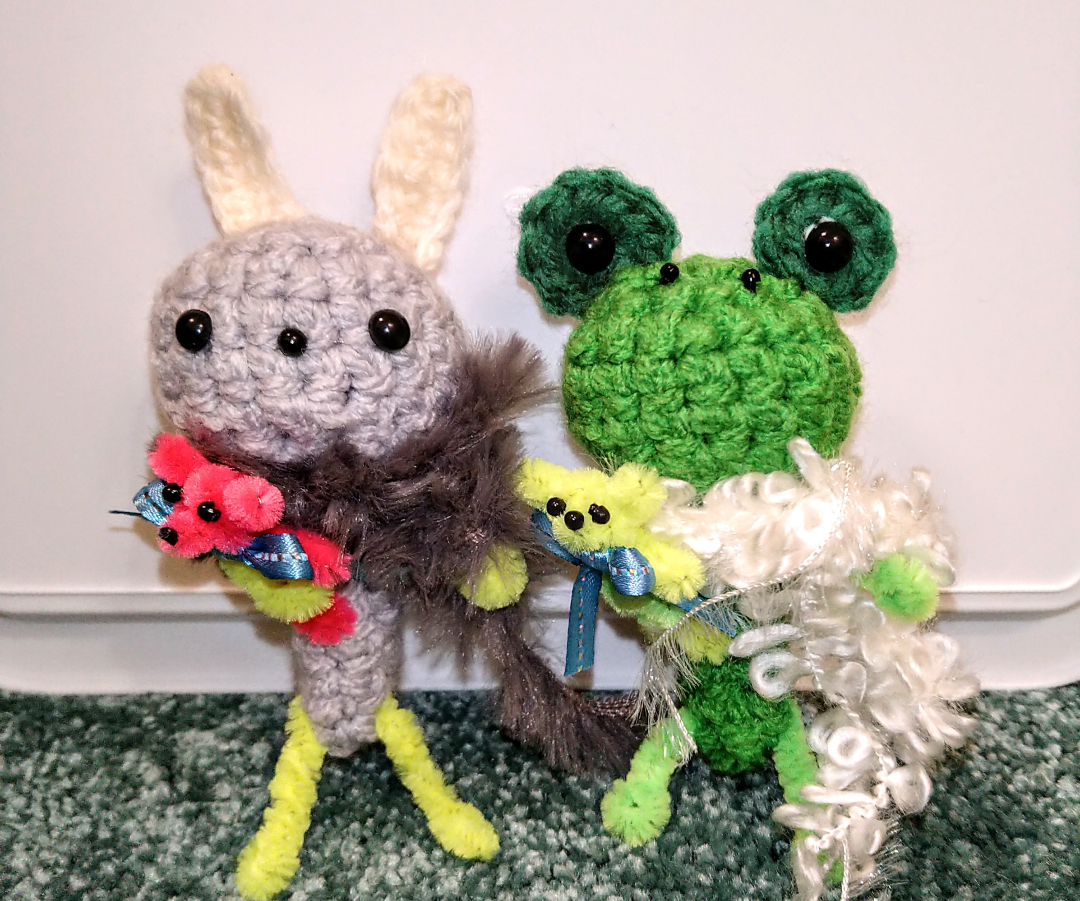 毛糸を使って、編んだり、巻いたりして、小さいな動物達を作ってます。 少し変わったニヤッとするような作品をつくってます。