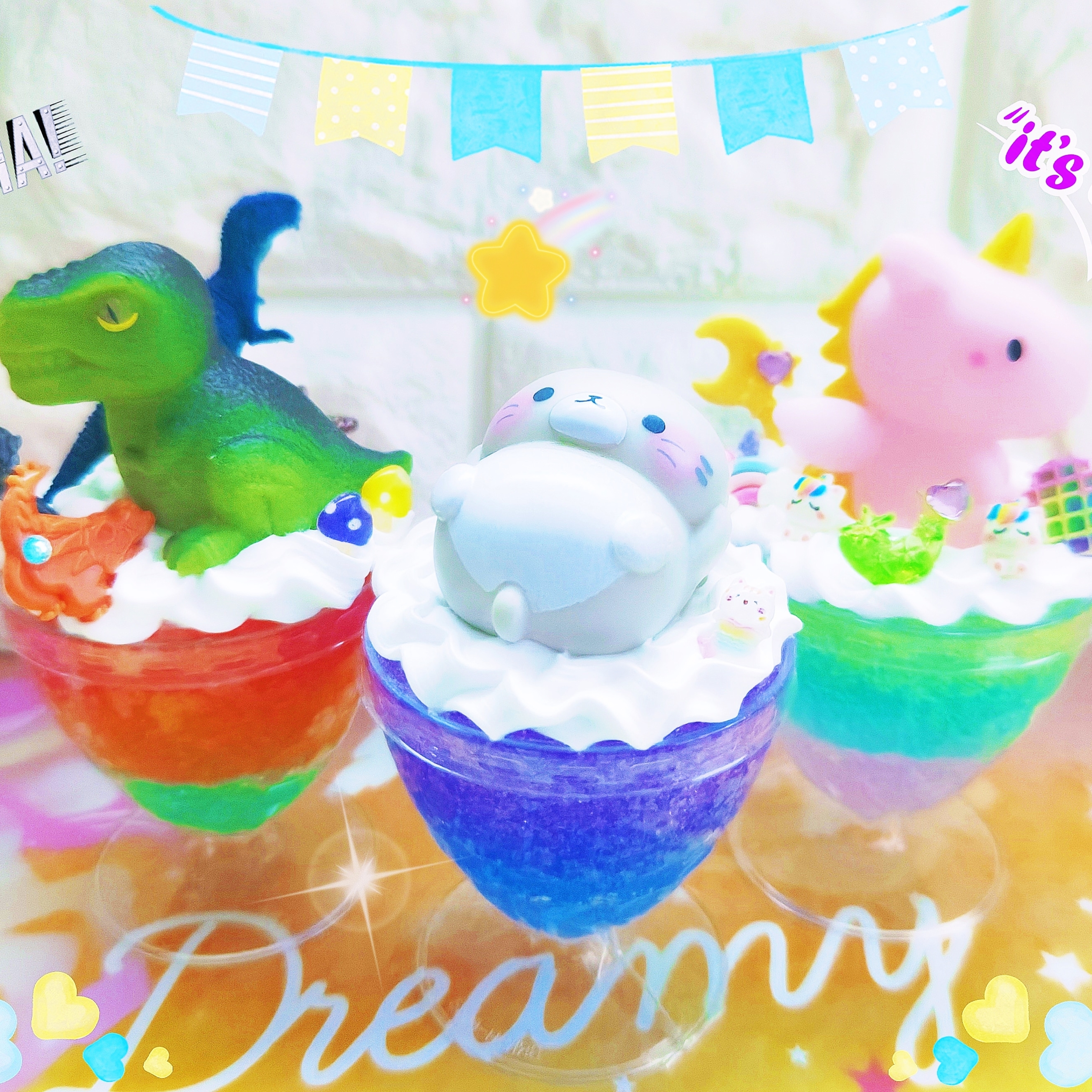 好きなアイス(マスコット)と8色の消臭ゼリーから好きな色を選んで、可愛いお部屋の消臭剤パフェを作ります